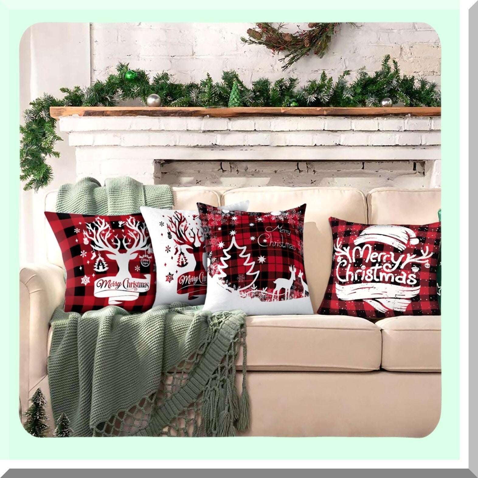 Winter Wonderland Plaid Pillow Covers - Set of 4, Holiday Party Throw Pillows for Couch - Farmhouse Decor 18 x 18 Inches
