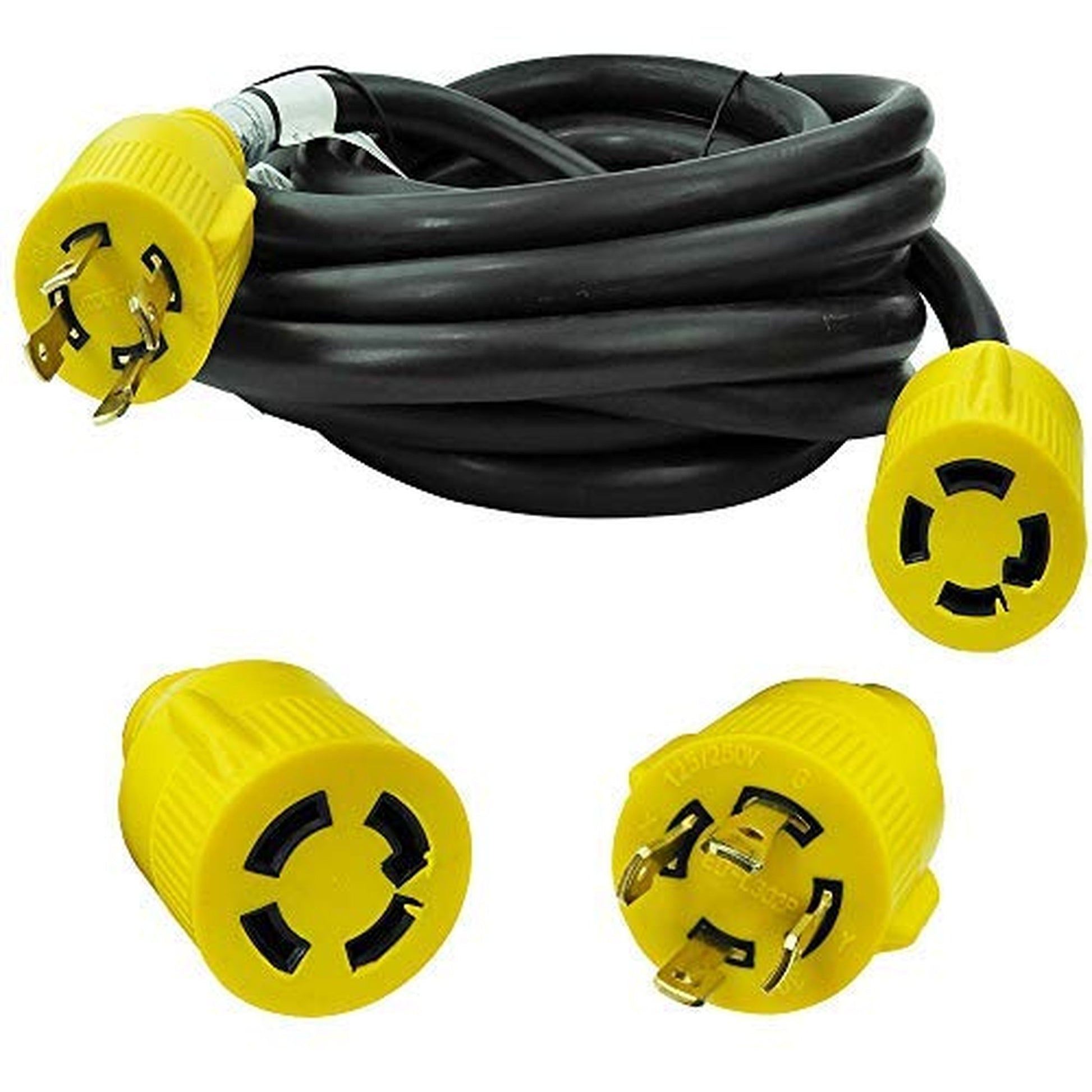 Introducing the ultimate solution for your power needs: the 25-foot 30-Amp L14-30 Generator Power Cord. Designed for optimal performance, this heavy-duty power cord is essential for anyone utilizing generators, portable appliances, or small machinery. With a robust capacity of up to 7,500 watts, it efficiently distributes 250 volts across two legs, providing 125 volts through four standard household receptacles—all from a single, reliable cable.