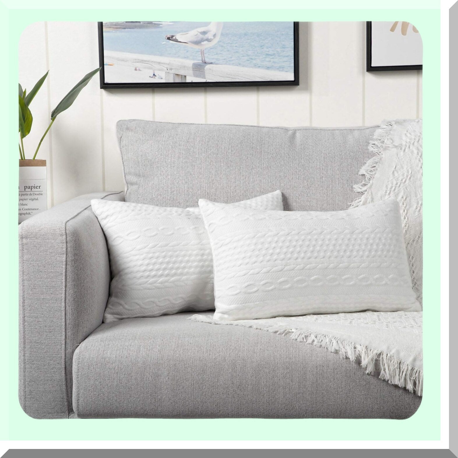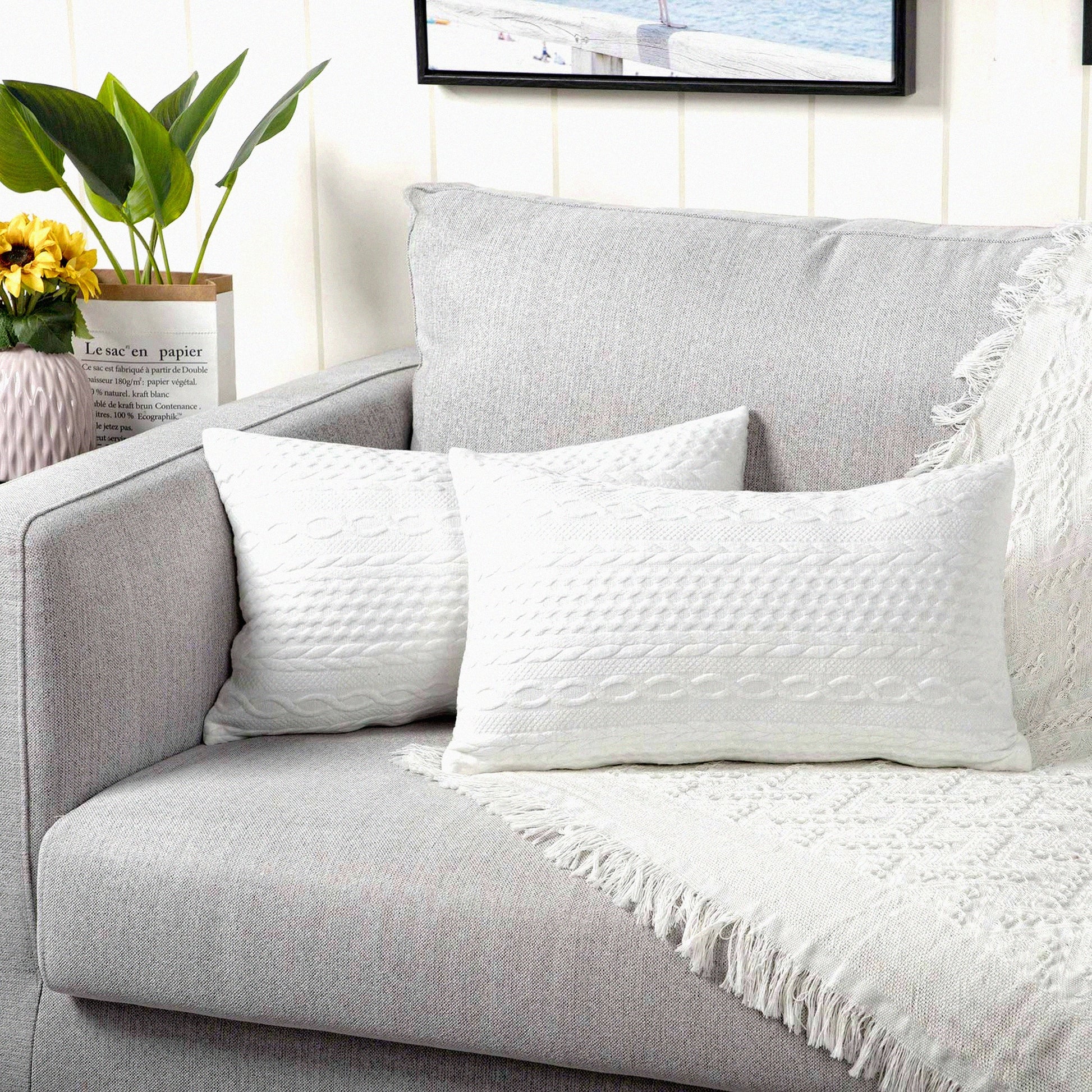 SuperSoft Lumbar Throw Pillow Covers - Set of 2 Modern Embossed Cushion Cases for Couch, Sofa, Bedroom, Car - 12x20 inch White Patterned Pillowcases