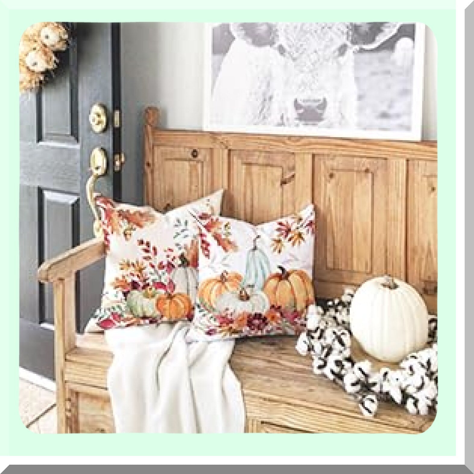 Autumn Harvest Pillow Covers Set - 20x20 Inch Orange White Pumpkin & Fallen Leaves Decorative Throw Pillow Covers for Fall Thanksgiving Farmhouse Decor