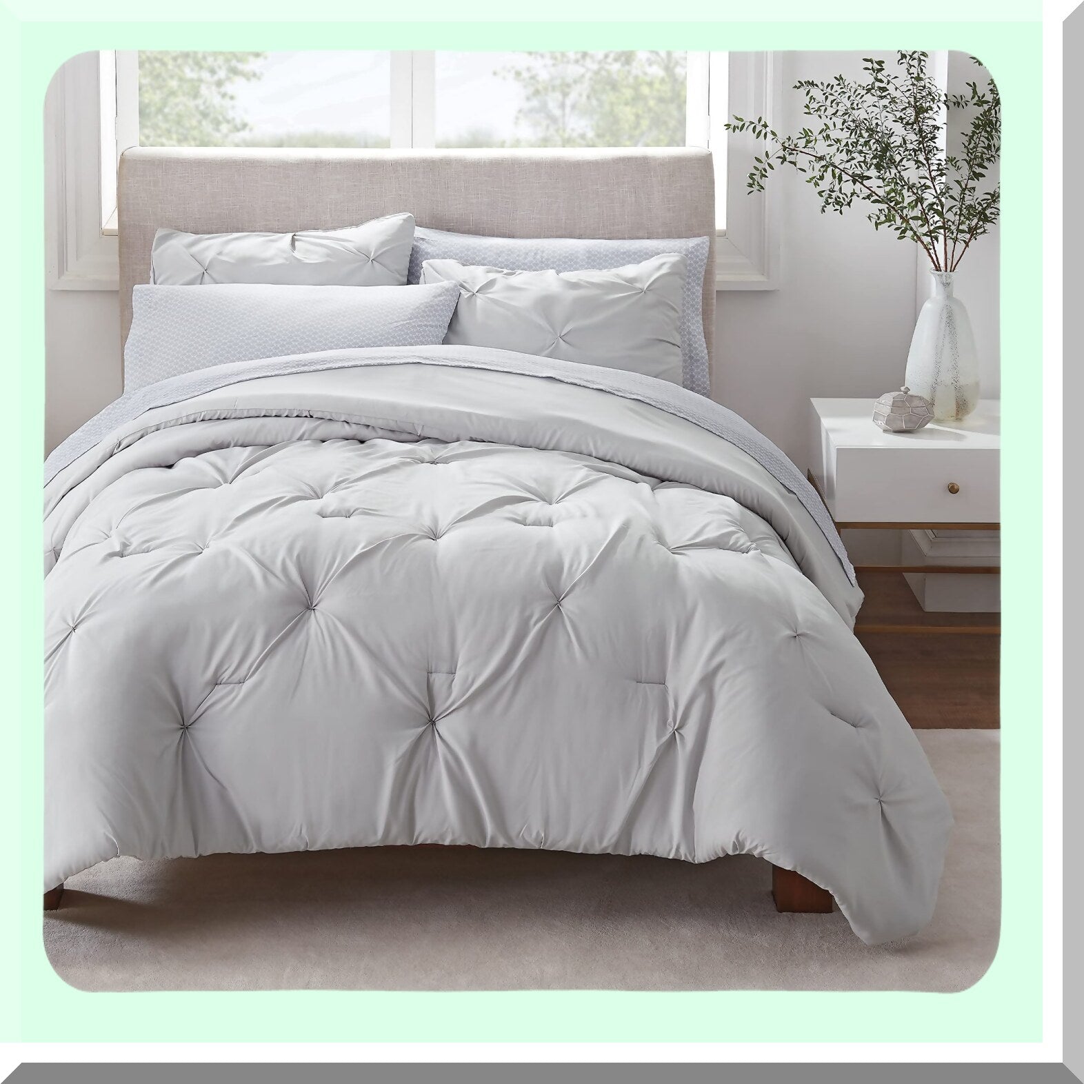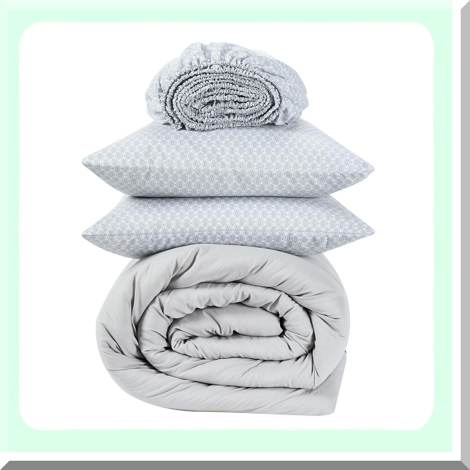 UltraLight Pleated Bedding Set - 7 Piece All Season Full Size Bed in a Bag - Simply Clean Grey Design - Lightweight and Cozy for a Restful Sleep