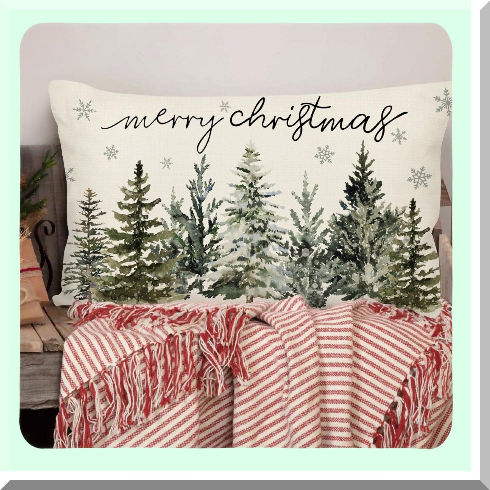 Snowflake Winter Wonderland Lumbar Pillow Cover - Farmhouse Decor Throw Cushion Case for Home Couch - 12x20 Inches Polyester Linen - Holiday Decorations