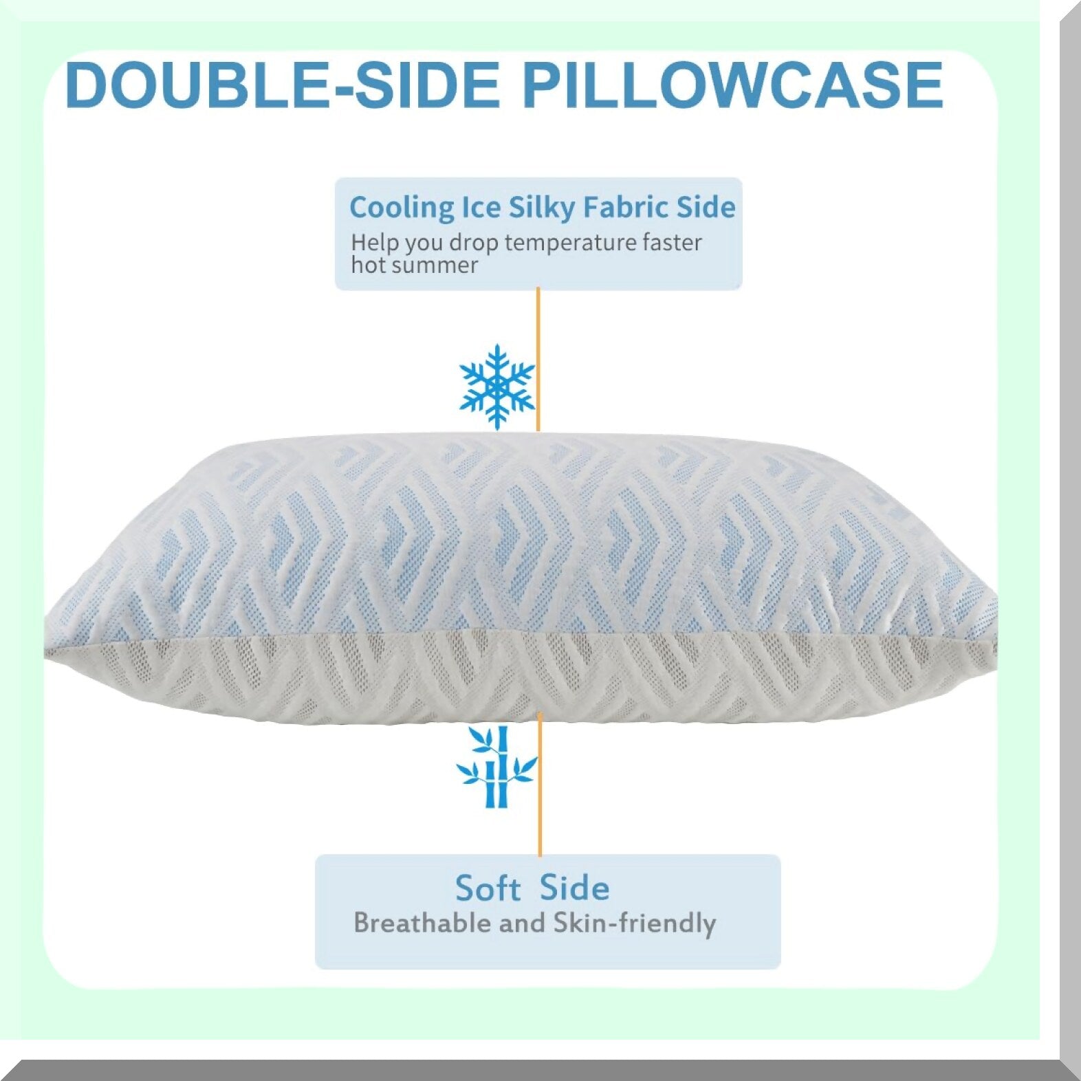 CoolDream Memory Foam Queen Size Pillow Set - 2 Pack, Side Sleeper Neck & Shoulder Pain Relief Pillows, Adjustable Cooling Sleep Pillow with Washable Cover