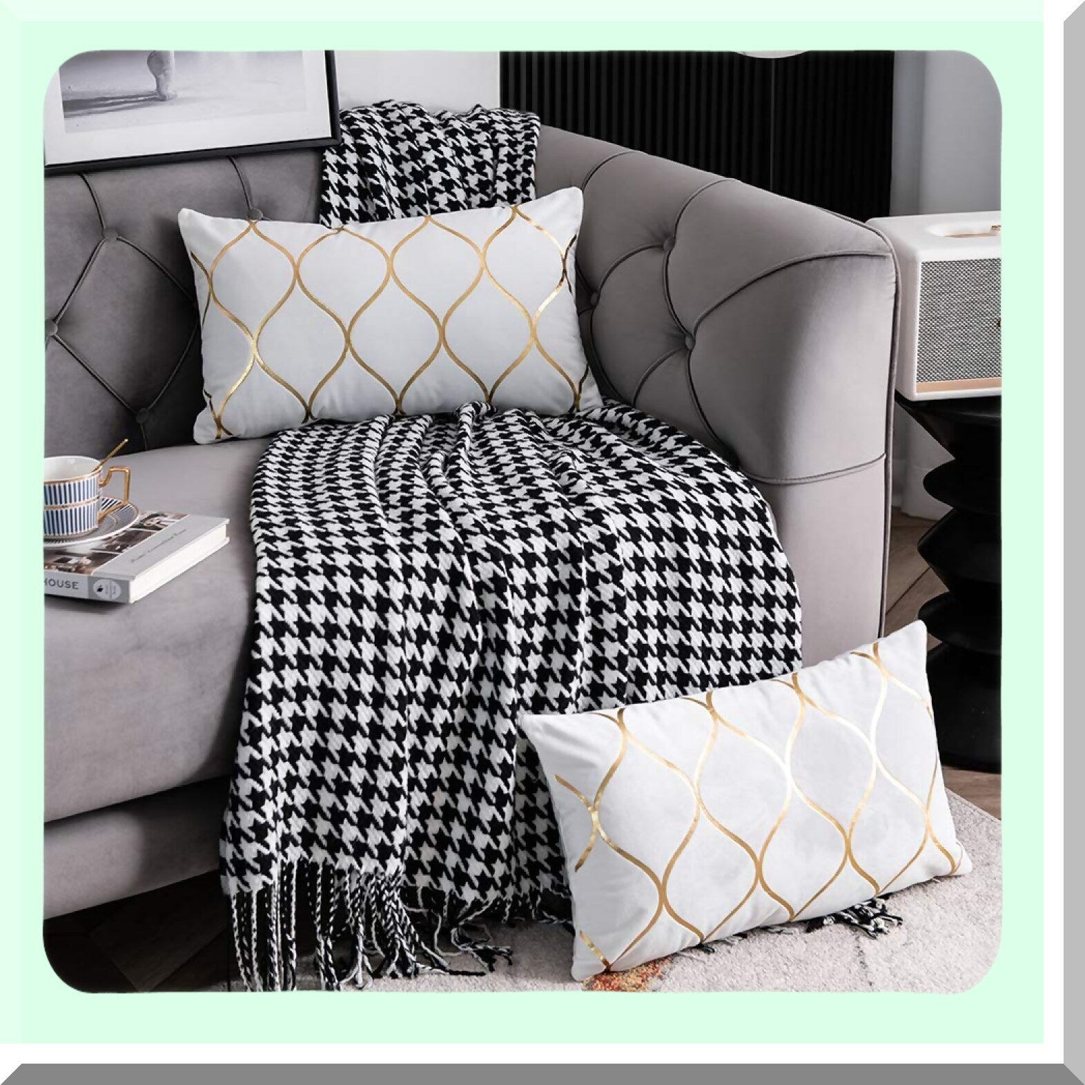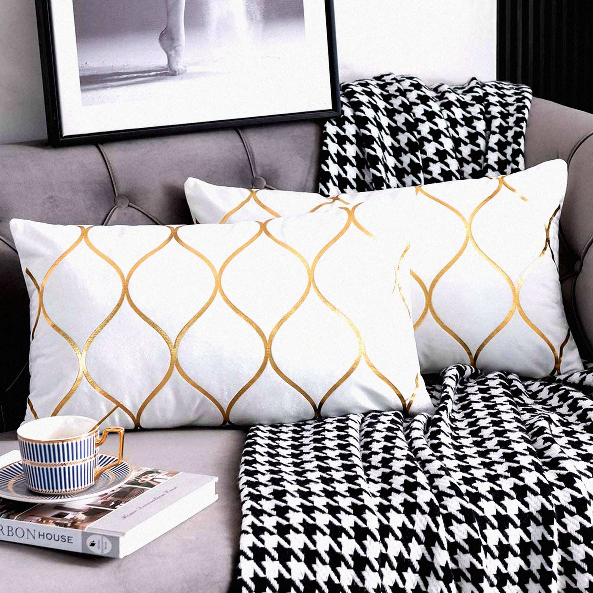 LuxuryGoldVelvetPillowCovers - Set of 2 Off White 12x20 Inch Rectangular Decorative Cases for Bedroom, Sofa, Couch, Living Room - Soft & Elegant