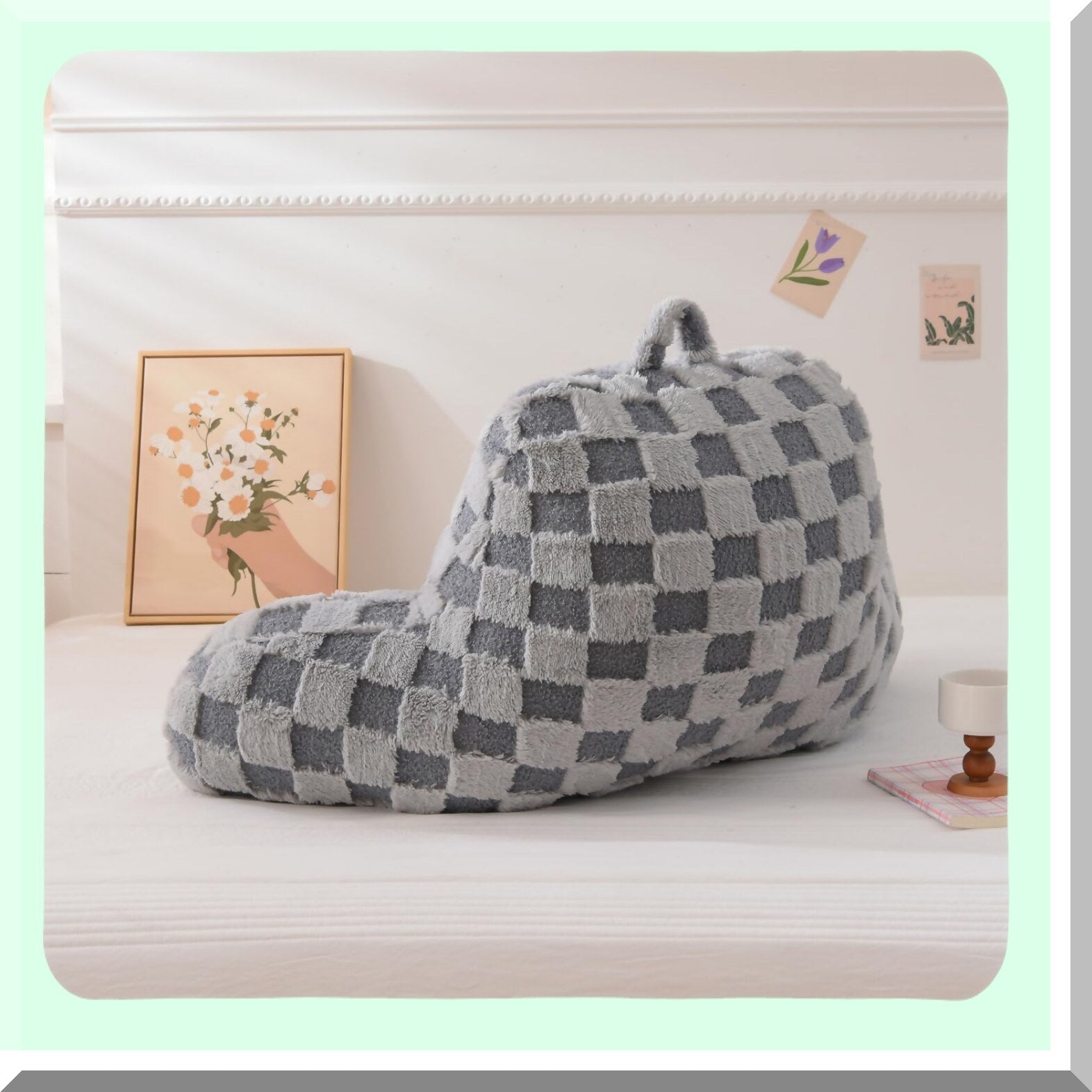 Checkered Comfort Rest Pillow - Bed Wedge Backrest with Arms Support for Sitting Up, Incline Cushion for Sleeping & Snoring - Grey, Large