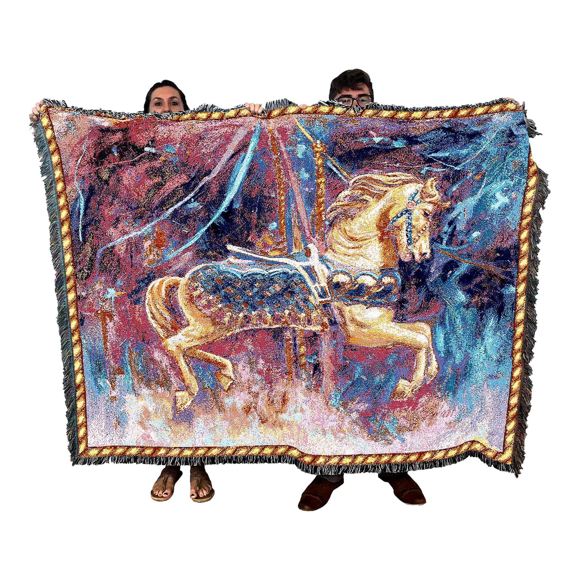 Whimsical Carousel Cotton Tapestry Blanket - 72x54 USA-Made Gift