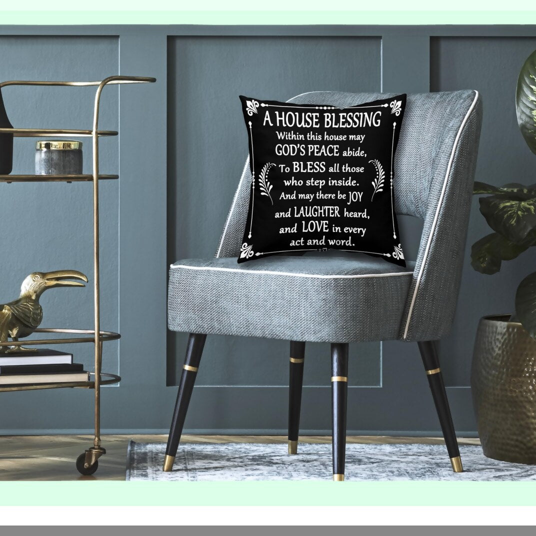 Blessed Home Decor Pillowcase - Farmhouse Housewarming Gift Set with Religious Blessing - 18x18 Inch Throw Pillow Cover for Homeowner - Christian Church Gifts
