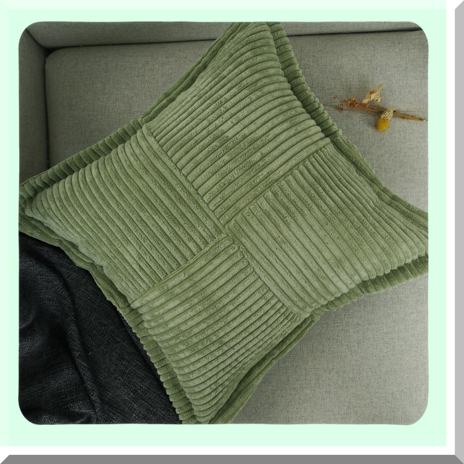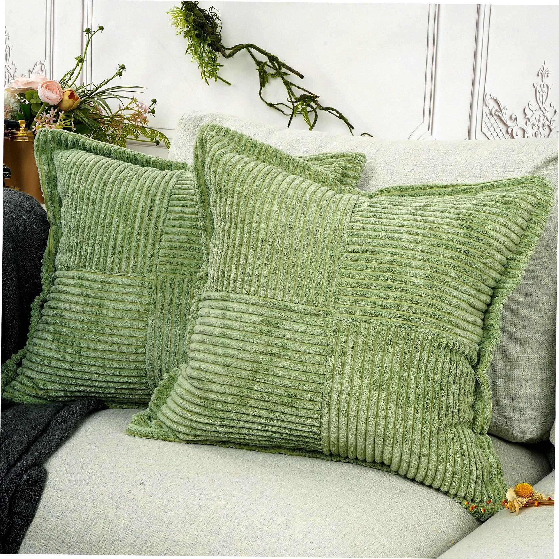 Boho Stripe Corduroy Pillow Covers Set - Super Soft Splicing Decorative Throw Pillows - Broadside Textured Cushion Covers for Couch - 18x18 Sage Green