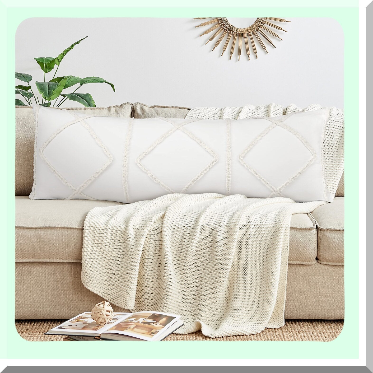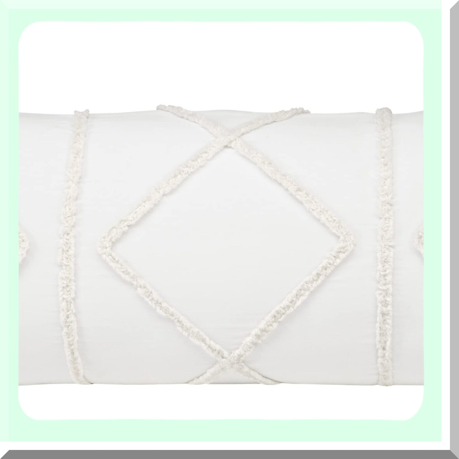 Boho Chic Macrame Tufted Body Pillow Cover - Textured Fringe Farmhouse Decor - Off White Canvas Couch Long Throw Zipper Case - Sweet JoJo Designs Accent 54x20
