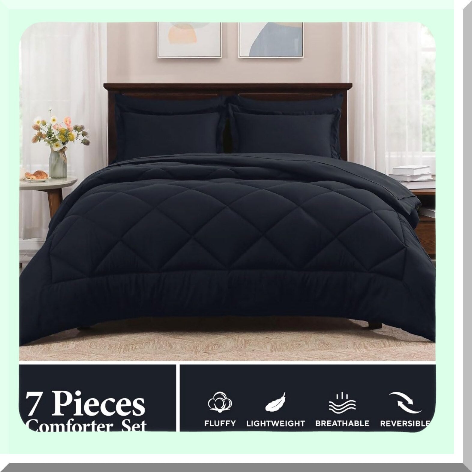 Transform your bedroom into a cozy oasis with this outstanding 7-piece set! This all-in-one package includes a soft and comfortable comforter set, perfect for updating your bedroom decor in a flash. Say goodbye to mismatched bedding and hello to a cohesive and stylish look with this convenient set. Whether you're looking to refresh your space or simply upgrade your bedding, this set has everything you need to create a dreamy home decor aesthetic.