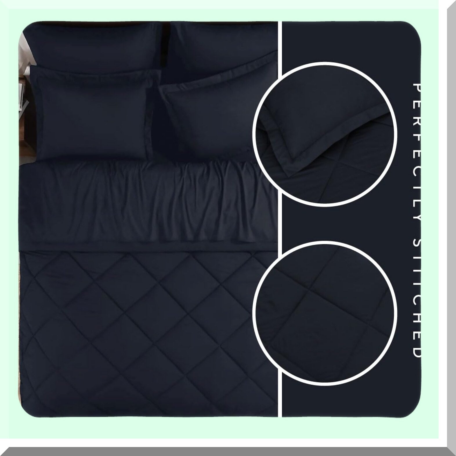 Navy Dream 7-Piece Bedding Set - All Season Comforter Set with Sheets, Pillow Shams, Flat Sheet, Fitted Sheet, and Pillowcases - Size Bed in a Bag