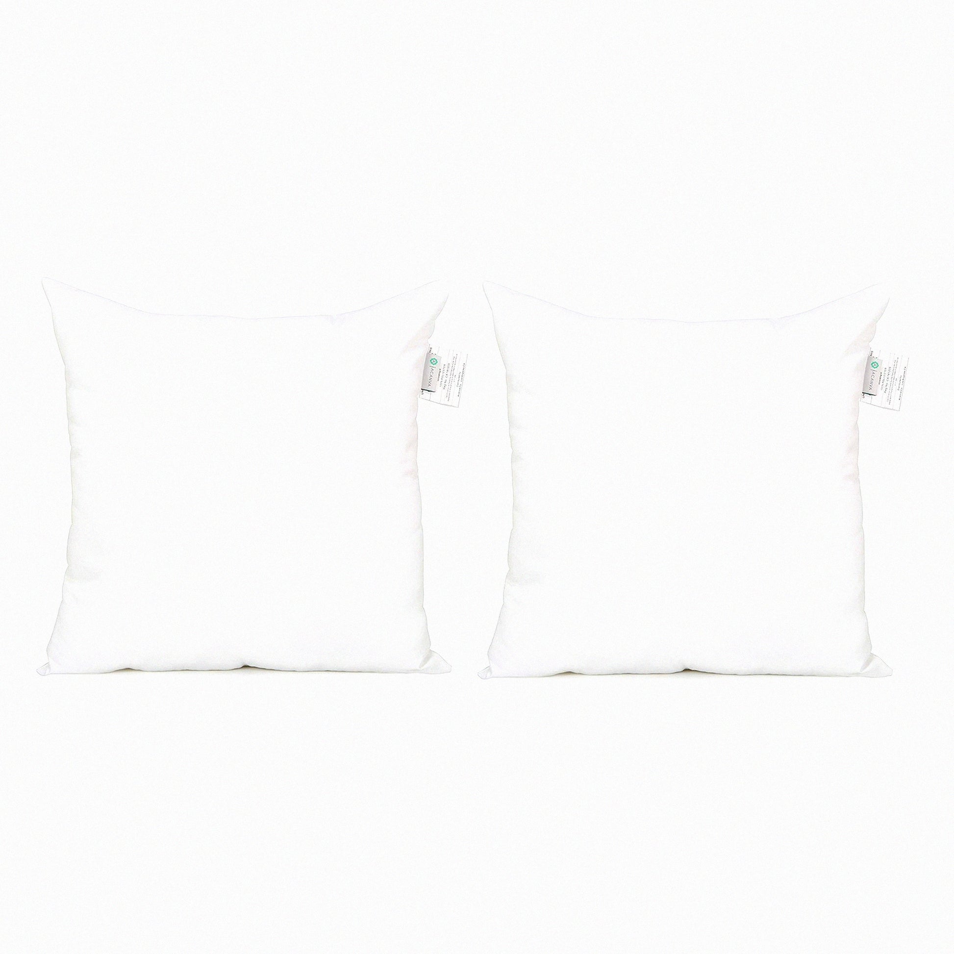 Hypoallergenic Square Soft Throw Pillow Inserts - Decorative Cushion Stuffer - 2 Pack White - Alternative Sham Filler