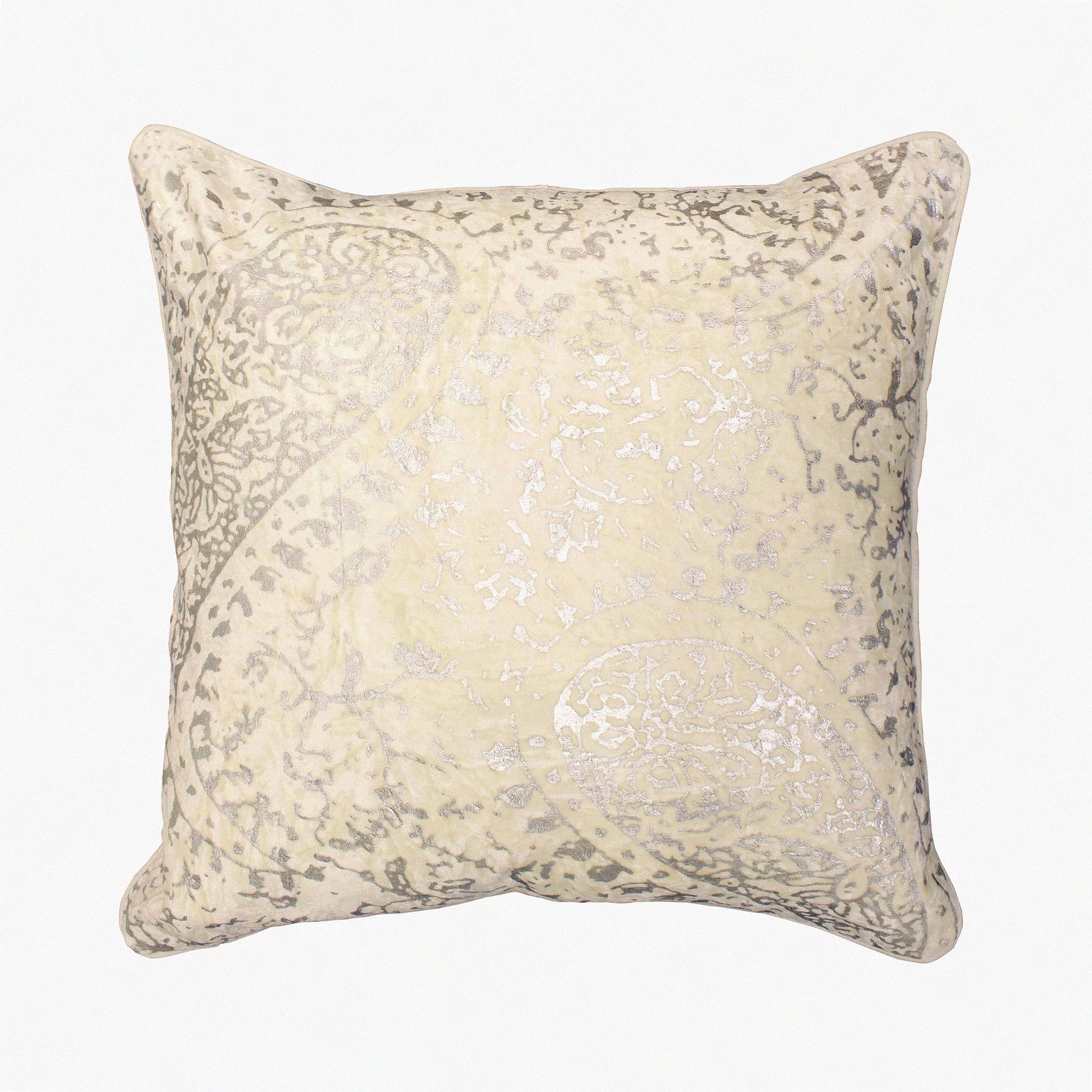 The practical benefits of the 20" x 20" decorative pillow cover from the Ashlyn Collection include a modern and chic look for any bed, sofa, or chair. The metallic f print on soft velvet fabric adds a touch of elegance to any room. The zipper closure allows for easy removal of the pillow insert. The pillow cover is made of a combination of viscose and cotton, ensuring both comfort and durability. This product provides a quick and easy way to update and enhance the decor of any living space.