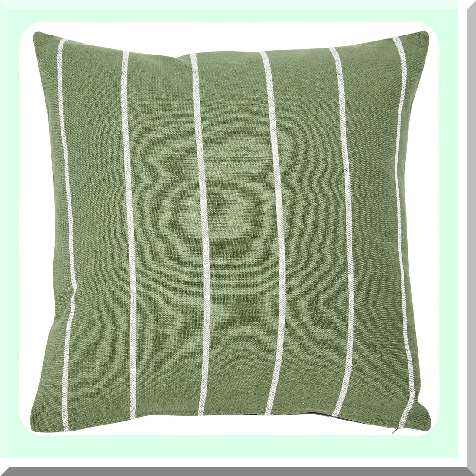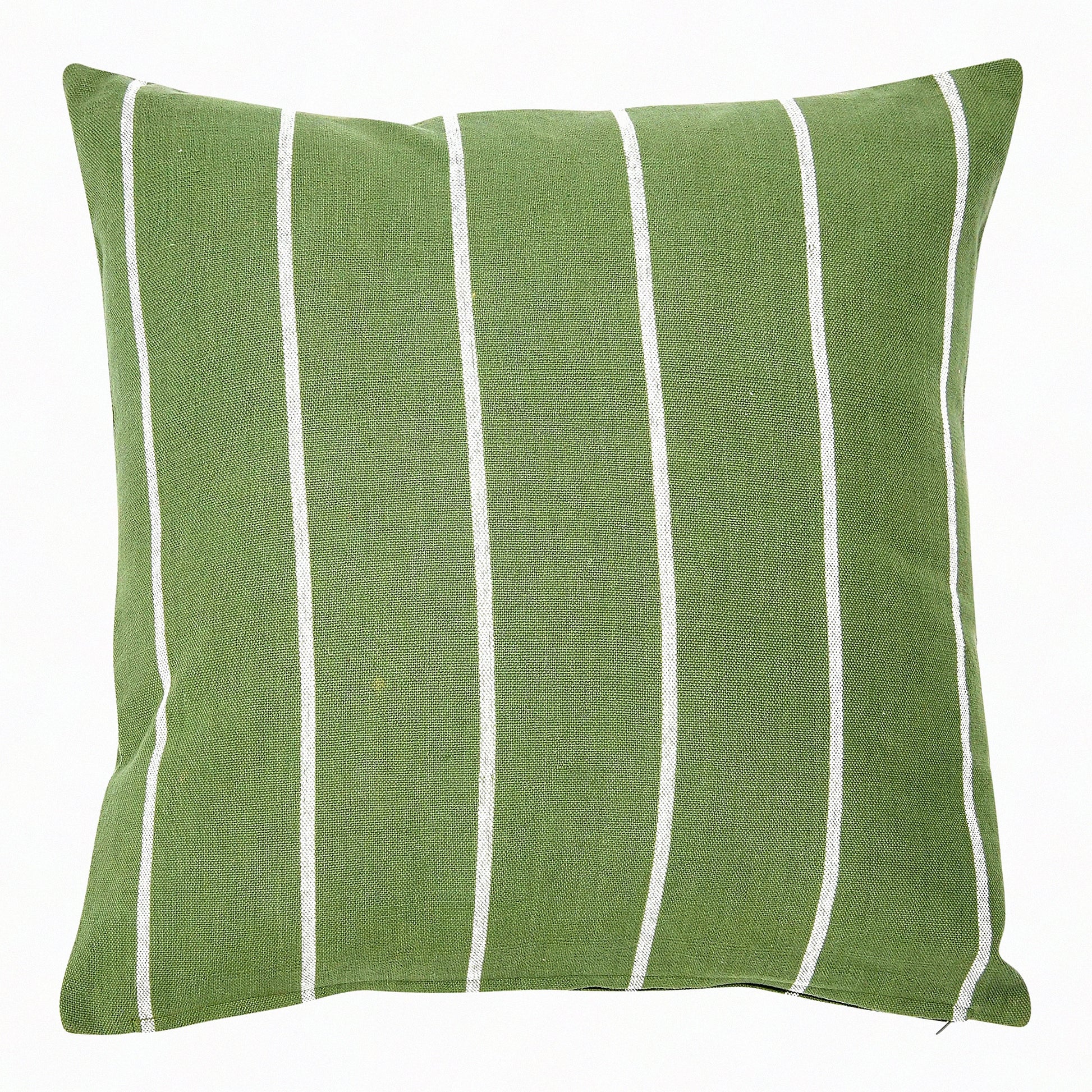 Green Stripe Cotton Square Pillow Cover - Interwoven Decorative Cushion Case 20x20 Inch
