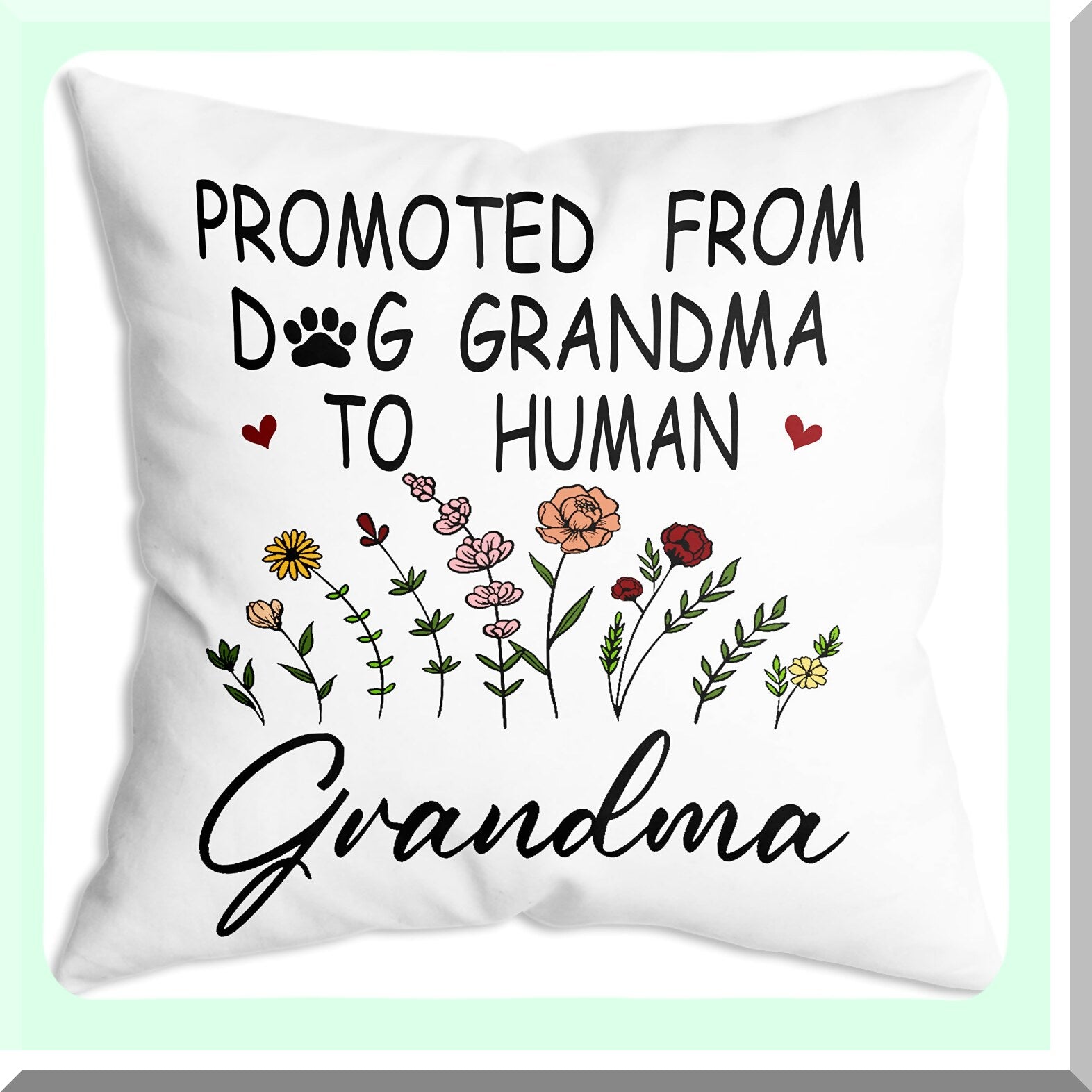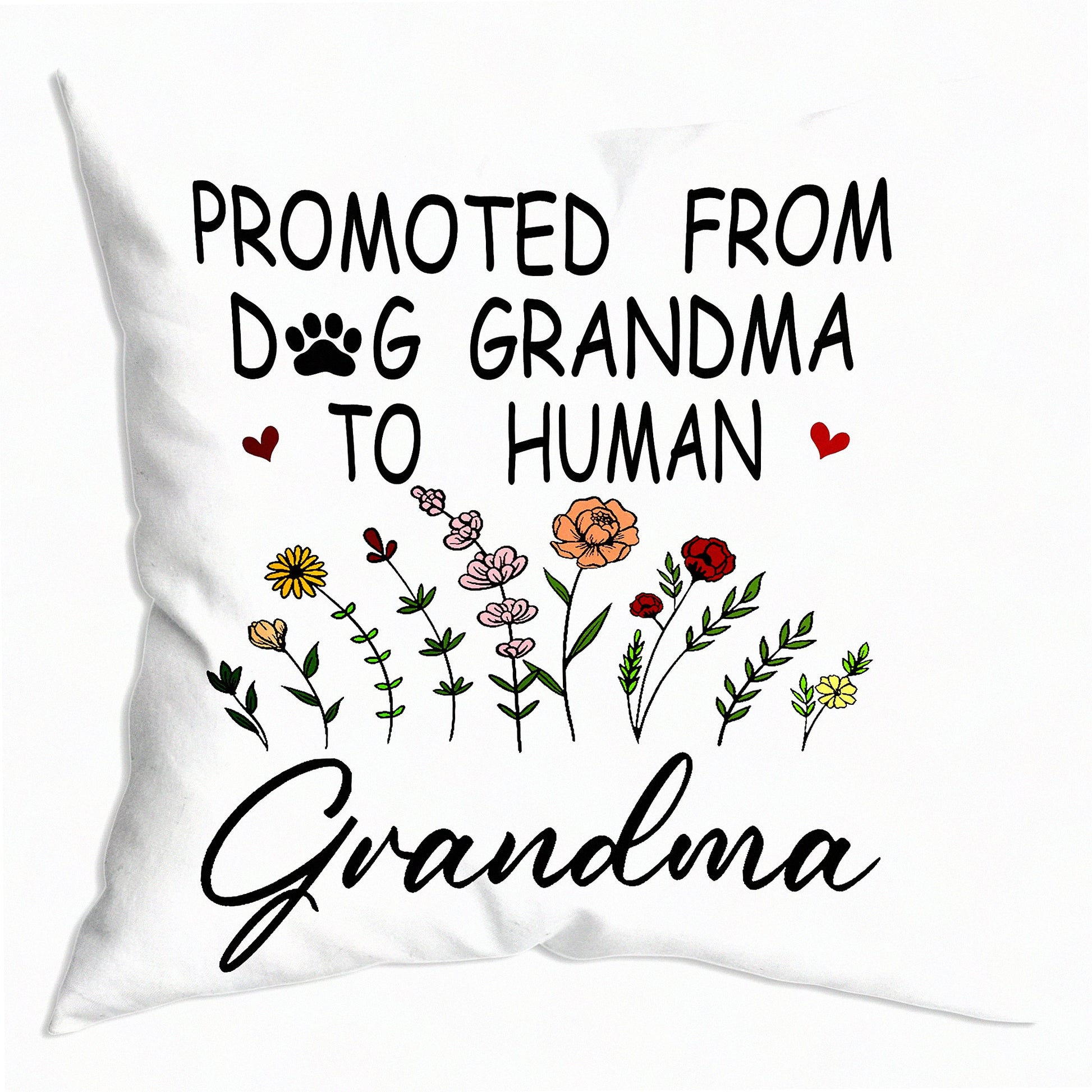 The practical benefits of the "Promoted from Dog Grandma to Human" throw pillow covers include their suitability as a unique and thoughtful gift for new grandmothers. They serve as a memorable way to announce a pregnancy or celebrate occasions like Mother's Day. The 18x18 inch size makes them a versatile addition to home decor, fitting standard throw pillows. These covers can enhance the emotional impact of special family moments, providing a lasting keepsake that commemorates the transition to becoming a grandmother.
