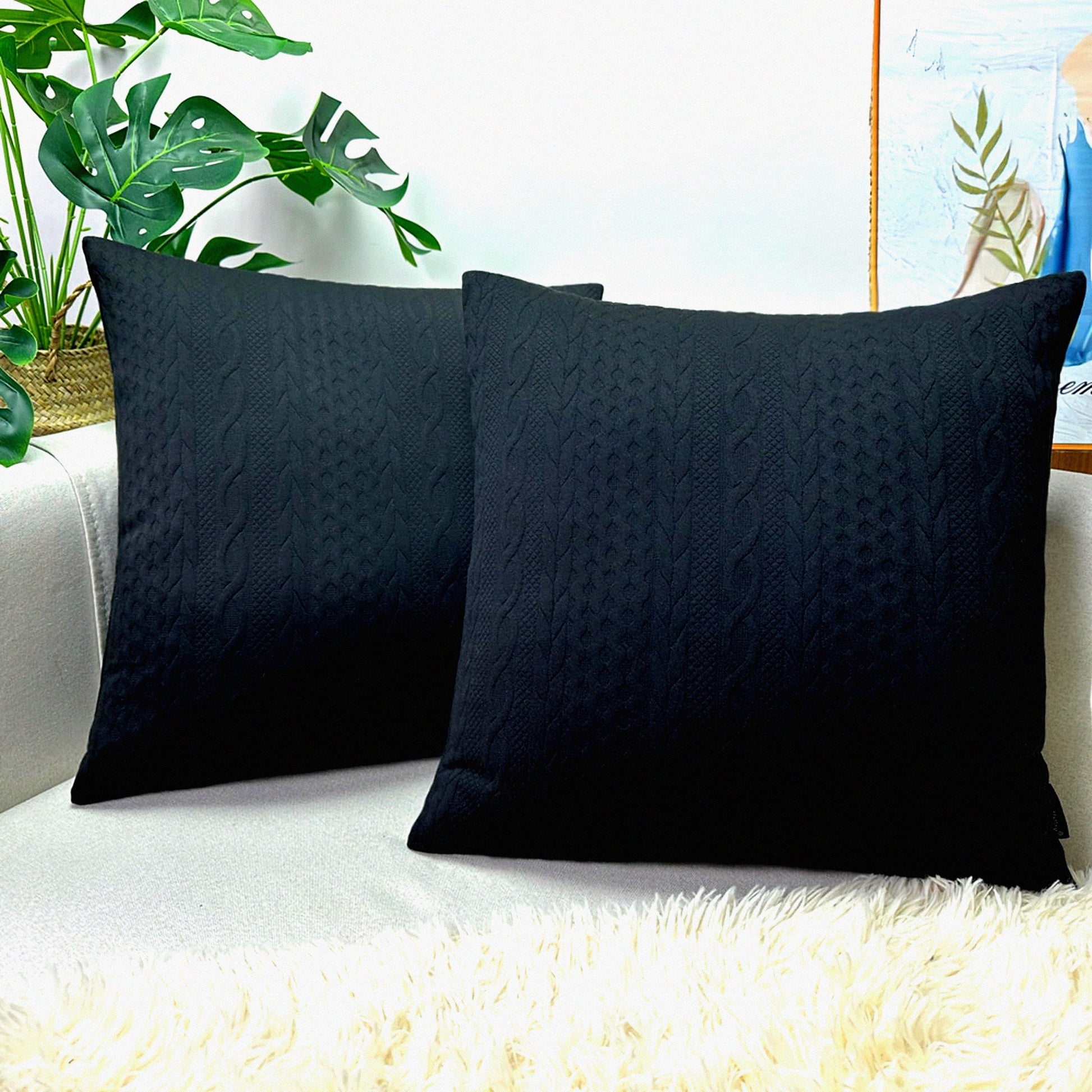 Embossed Black Pillow Covers - Set of 2 | Modern Decorative Cushion Cases for Sofa Bed Chair | Soft Stretchy Fabric | 18x18 inch Square Pillows