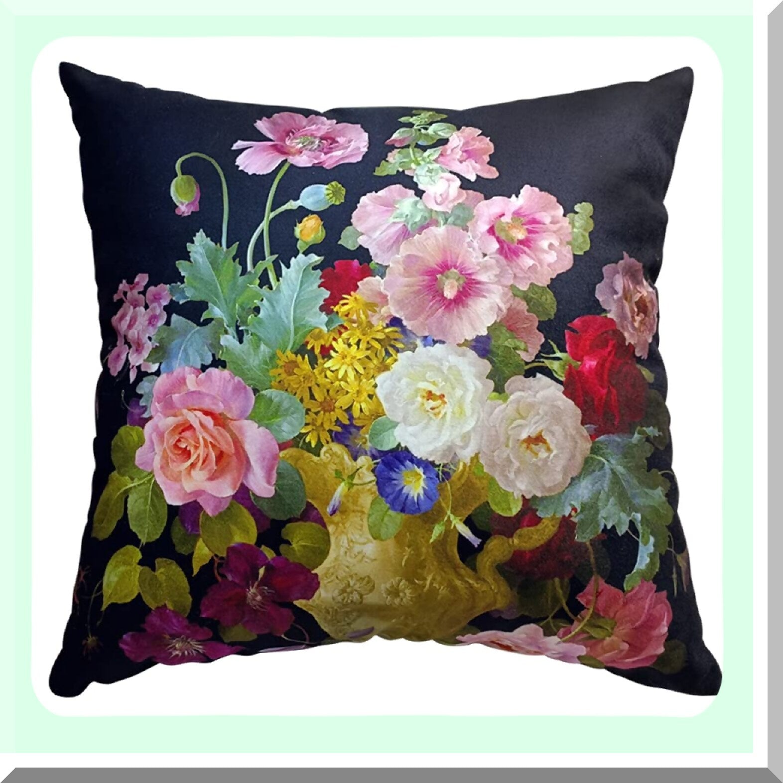 Luxury Bloom Velvet Pillowcase - Double Sided Floral Cushion Cover 16x16 - Elegant Decorative Flower Pillow Case - LC-786