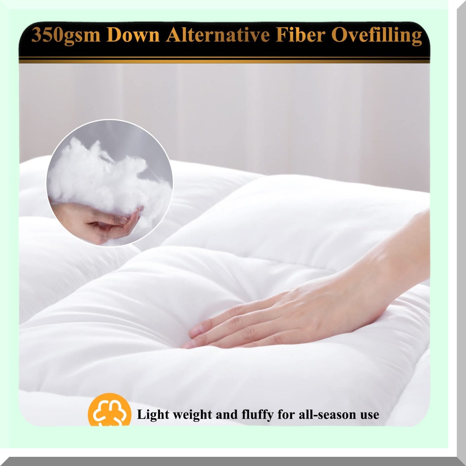 The all-season quilted comforter in queen size offers practical benefits such as versatility for year-round use, light weight for easy handling, and a high-quality duvet insert made from 233T peach fabric with 350gsm down alternative fiber. The hotel-quality comforter is machine washable, making it easy to clean and maintain. Users will appreciate the comfort and warmth provided by the quilted design, as well as the durability and long-lasting quality of the materials used. Overall, this comforter offers convenience, comfort, and quality for a better sleeping experience.