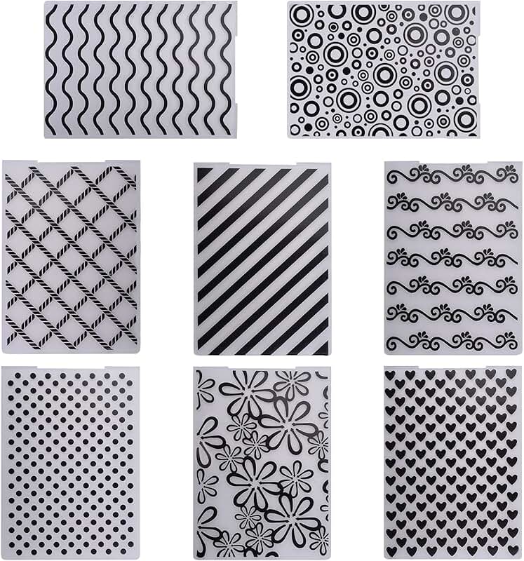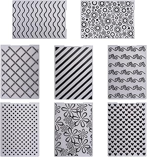 This set includes eight plastic embossing folders designed for craft projects. They are suitable for creating textured patterns on paper and card stock, making them ideal for scrapbooking, card making, and other DIY crafts. The folders are easy to use and help add decorative details to your projects.