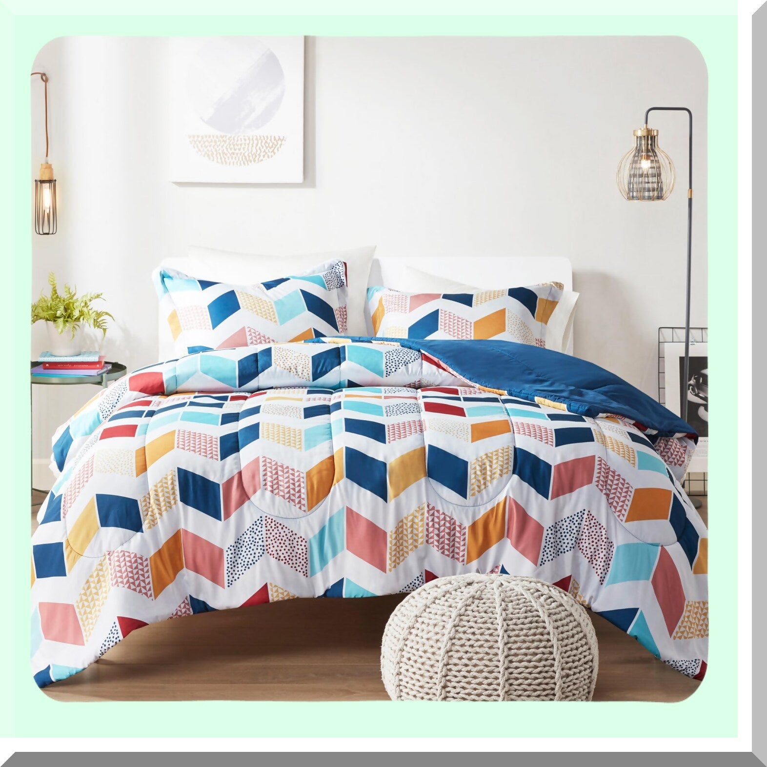 Vibrant Chevron Comforter Set - All Season Down Alternative Bedding with Matching Sham - Twin/Twin XL - Cozy Ruching Design - Multi/Aqua - 2 Piece