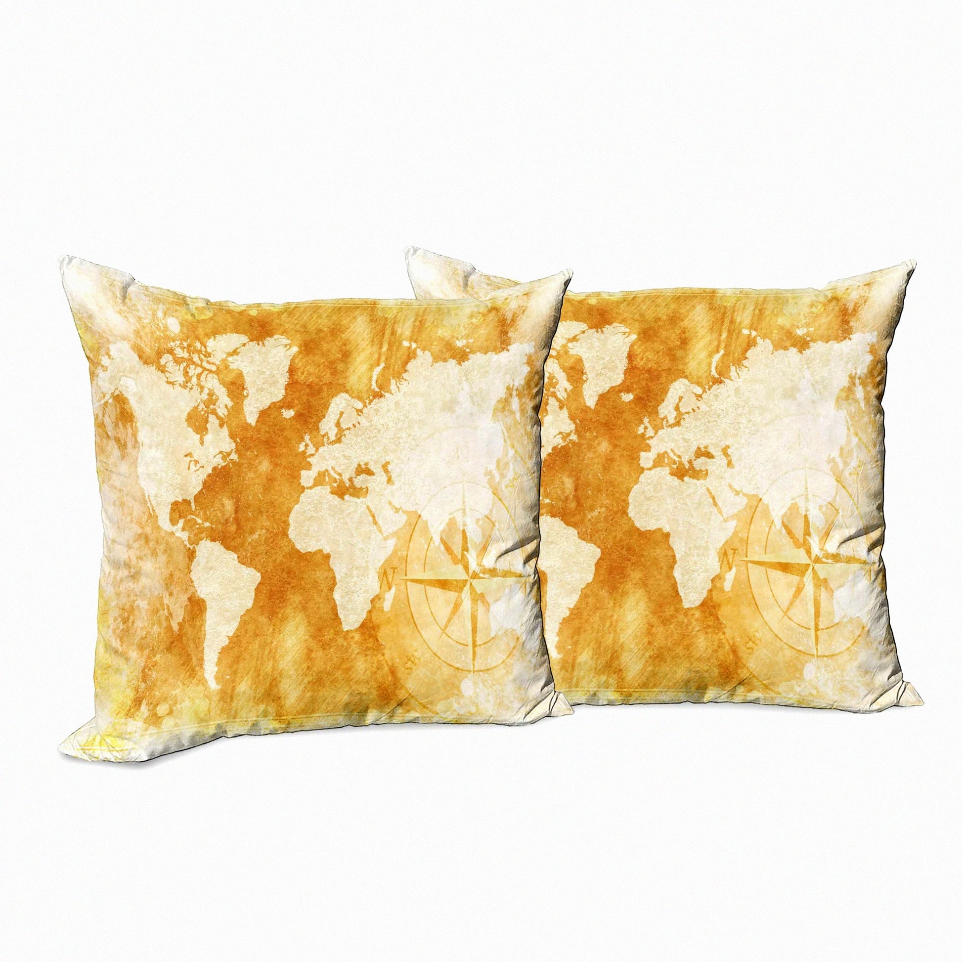 Vintage Map Decorative Pillow Cover Set - Retro Distressed Design for Couch or Bedroom - Pack of 2 Cushion Cases in Cream Tan - 18 Inch Square
