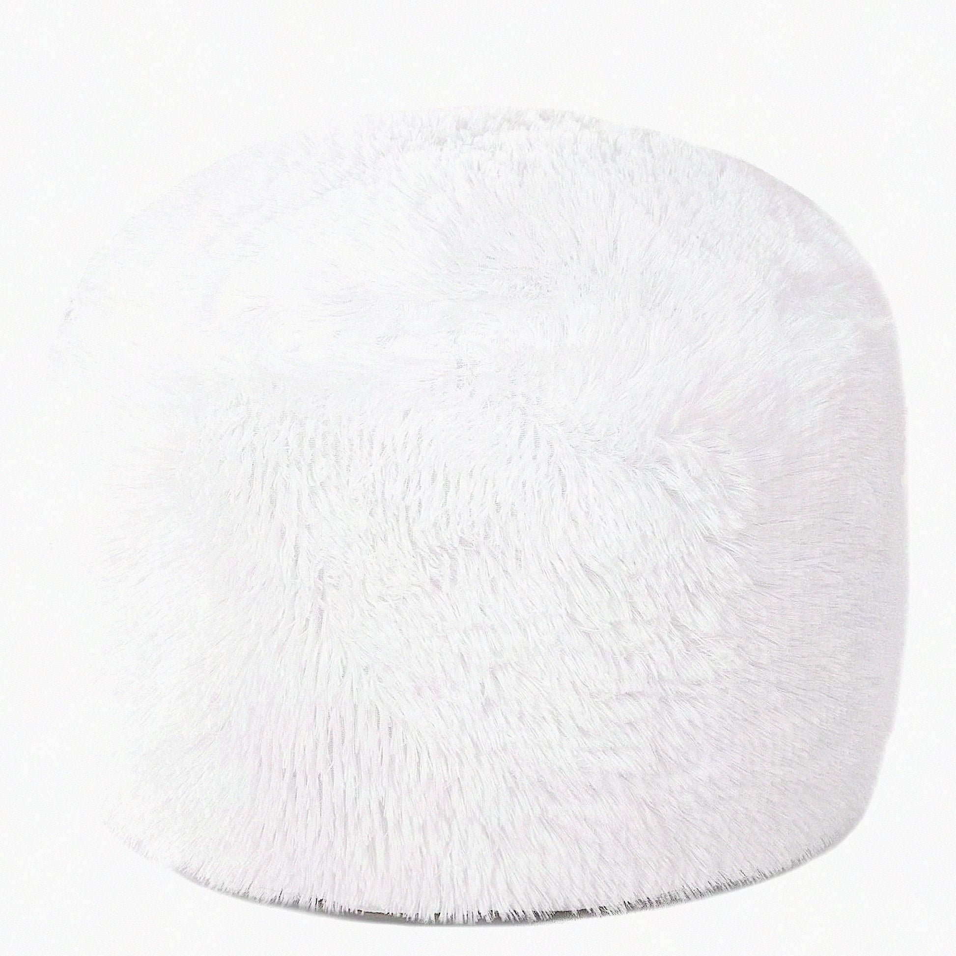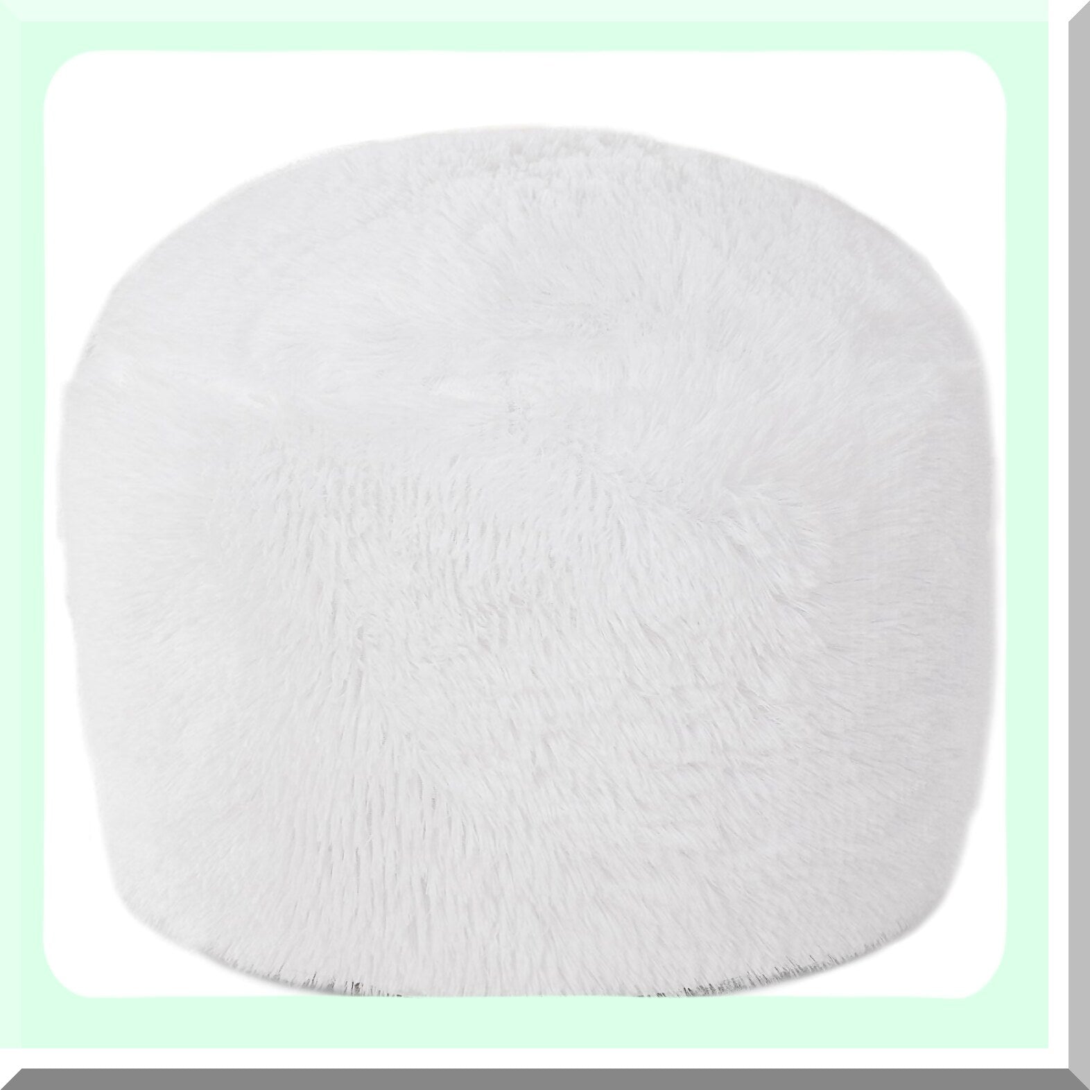 Fuzzy White Ottoman Pouf Cover - Round Foot Stool & Storage - 20"x20"x12" Floor Bean Bag - Living Room, Bedroom, Office - No Filler - Foot Rest Cover