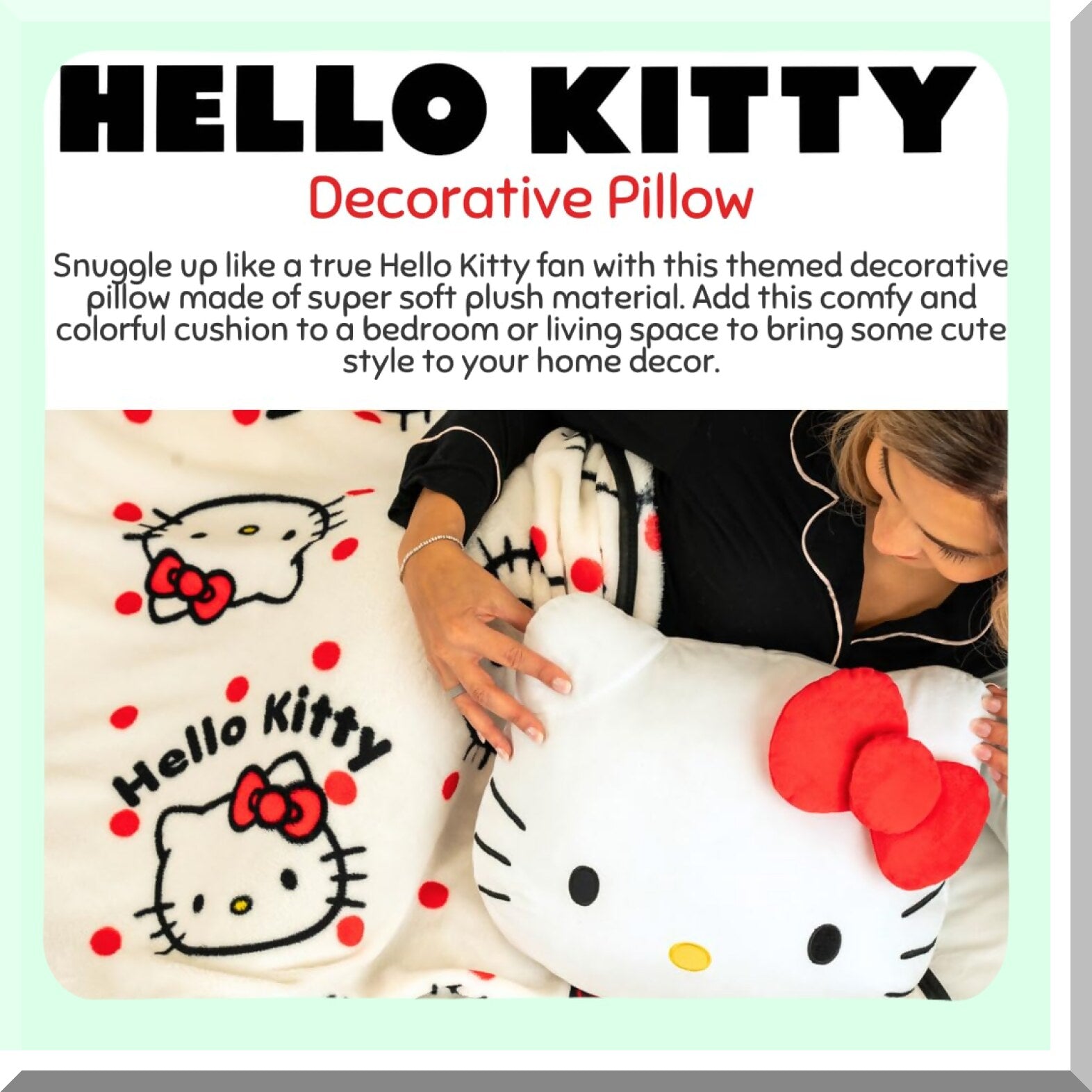 Super Plush Hello Kitty Throw Pillow - Soft Decorative Bedding, 16" Inch - Officially Licensed Cozy Cushion for Kids and Adults - Cute and Comfy Home Decor Accessory