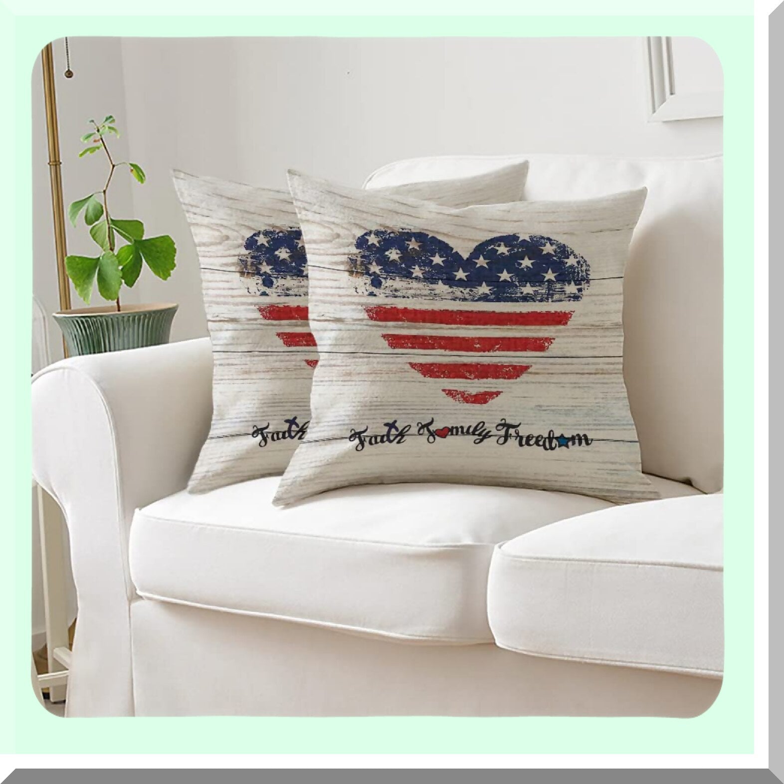 Patriotic Heart Flag Family Faith Freedom Pillow Covers - Set of 2, 18 X 18 Inch Independence Day Throw Pillows, Memorial Day Printed Cushion Covers