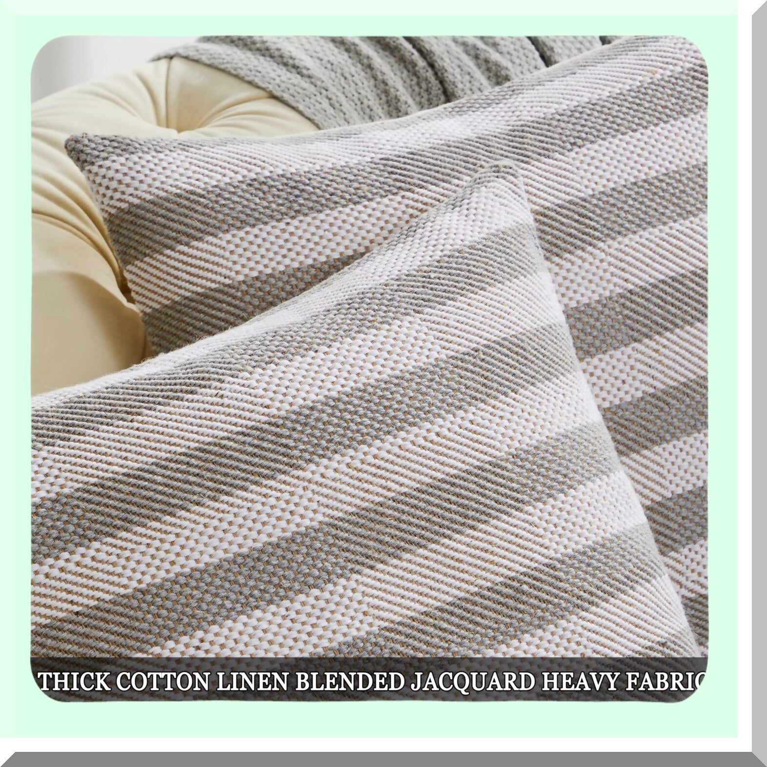 Boho Stripe Decorative Pillow Covers - Set of 2 18x18 Inch Cotton Linen Cushion Cases for Couch Sofa - Grey Throw Pillows