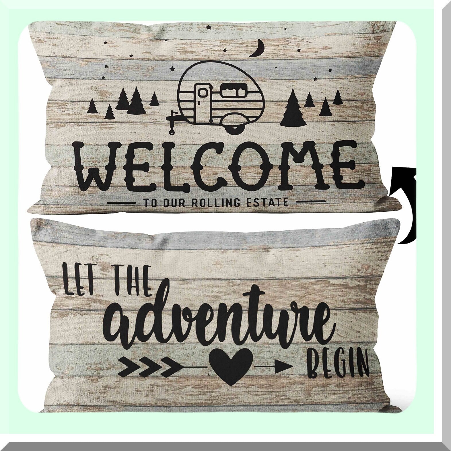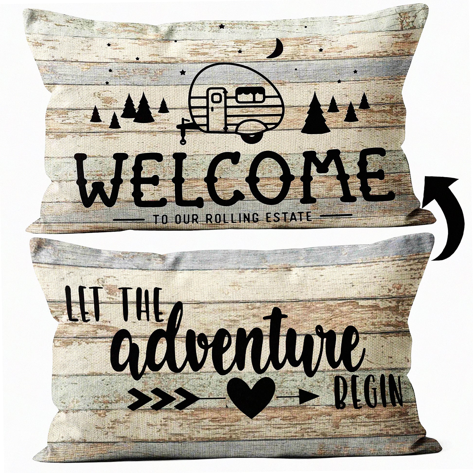 Adventure Haven RV Pillow Covers - Set of 2, Camping Decor Gifts, Camper Accessories, Double-Sided Print 12x20 Cushion Covers, Interior RV Decorations