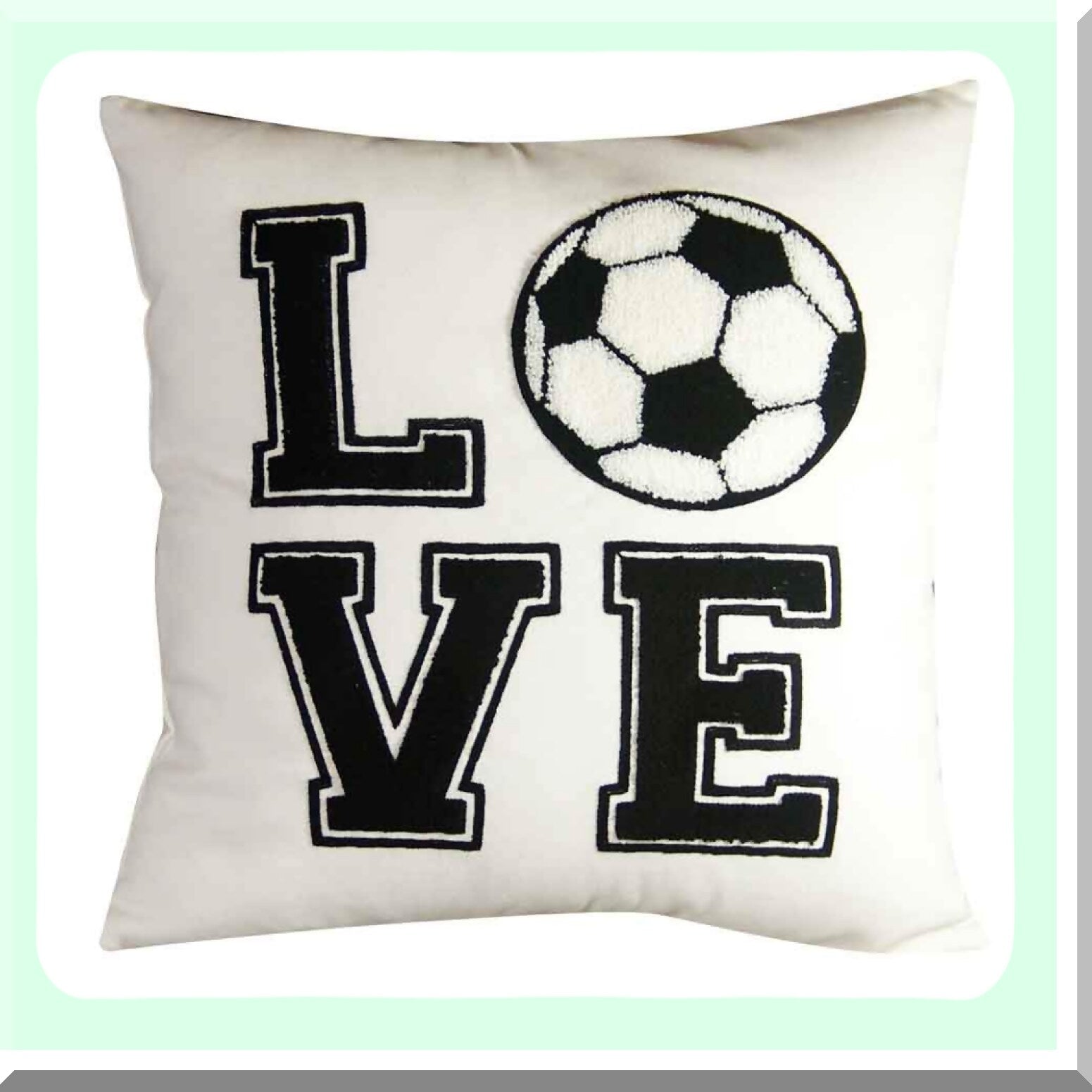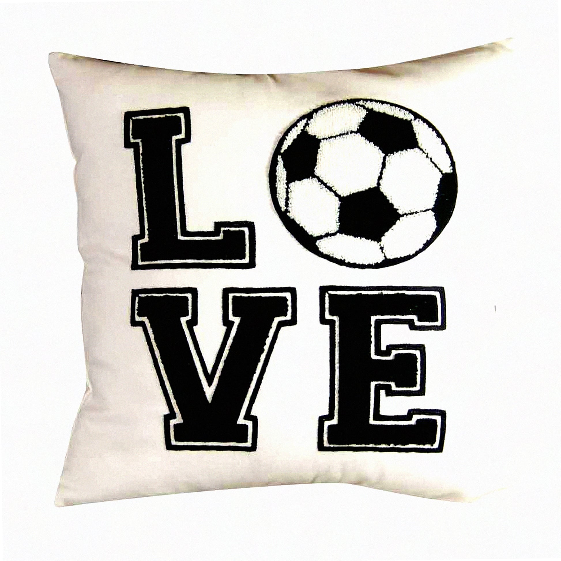 Soccer Love Embroidered Decorative Pillow Cover - 18x18 Inches - Sports Fan Throw Pillow - Soccer Theme Home Decor - Love Soccer Design - Cover Only