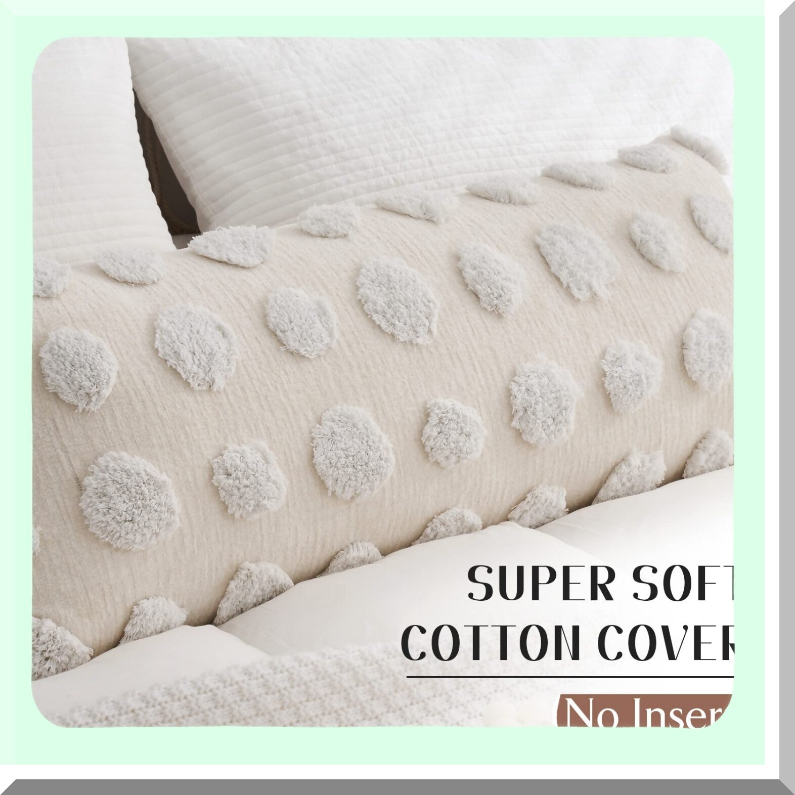 Chenille Boho Dotted Tufted Lumbar Pillow Cover - 14x36inch Bohemian Textured Body Throw for Bed Sofa Living Room - Soft Decorative