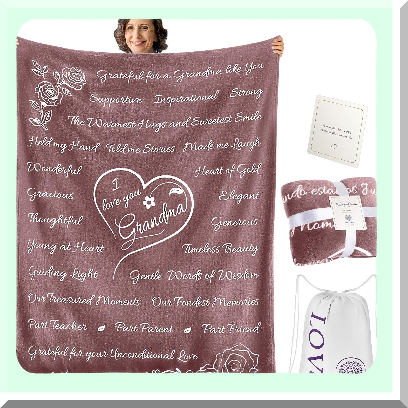 Looking for a special gift for Grandma? Look no further than our I Love You Grandma Blanket! This unique blanket is covered in inspirational quotes that celebrate the special bond between grandmothers and their loved ones. What sets us apart? Our blankets are crafted with HIGH DEFINITION designs, ensuring rich colors that won't fade. Plus, our blankets are 5 inches longer for full body comfort. Made with 280 GSM fabric, our blankets are thicker and fluffier than the rest, yet lightweight and breathable for year-round use. Our premium microfleece material is soft to the touch and machine washable. Give Grandma a gift she'll cherish with our cozy and unmatched blanket - buy now and show her how much she is loved every day.
