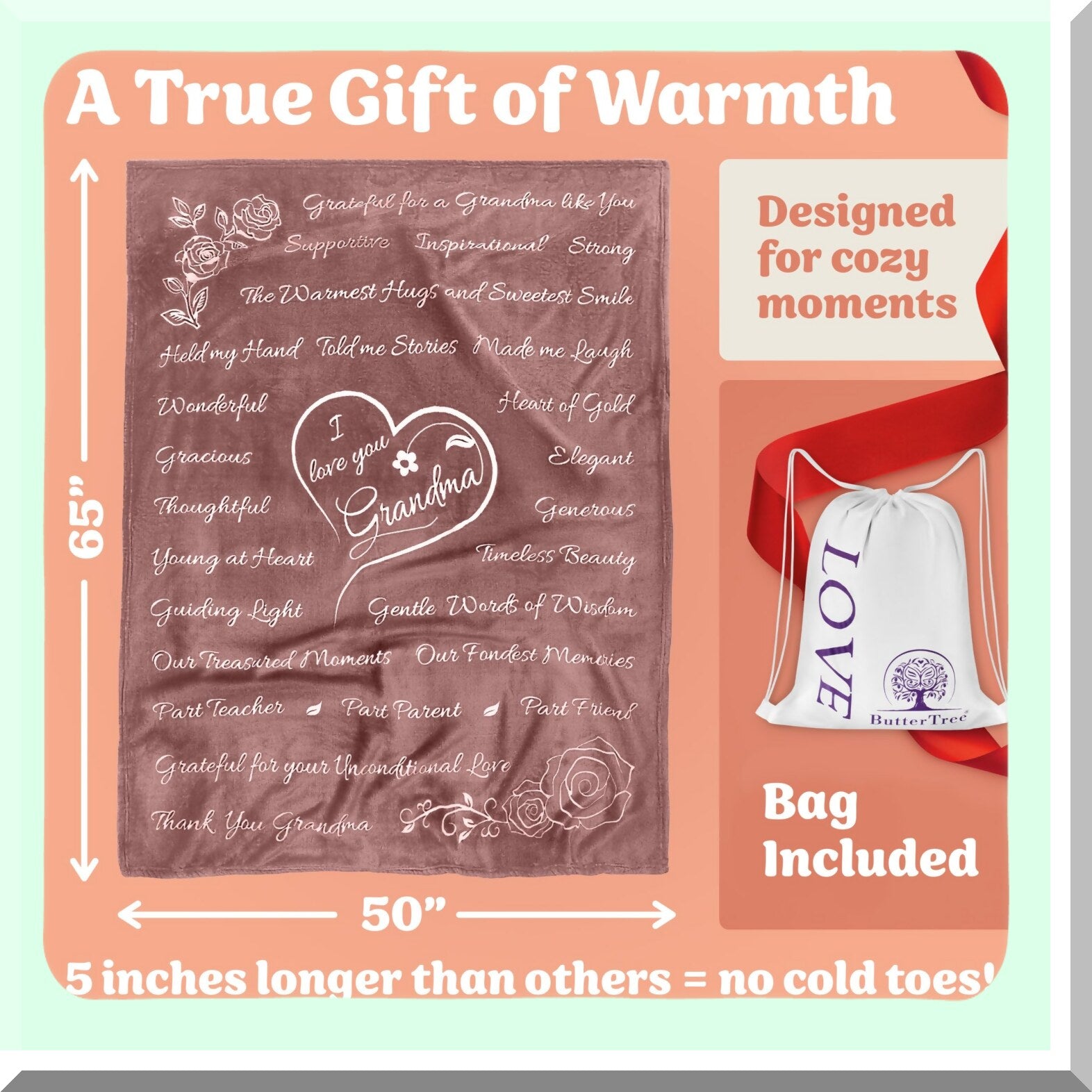 CozyEmbrace Grandma Throw - Perfect Birthday Gift from Grandkids, Soft Taupe Blanket 65x50