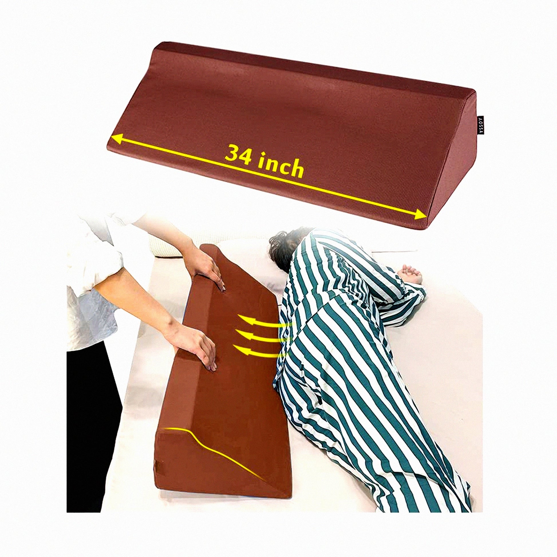 The 34-inch long foam wedge pillow provides excellent support for the entire back, offering relief and comfort for users. The practical benefits include improved posture, reduced back pain, enhanced relaxation, and better sleep quality. The wedge design allows for versatile usage, such as elevating the legs or providing support while sitting up in bed. Users can experience immediate relief and long-term benefits from using this pillow regularly.