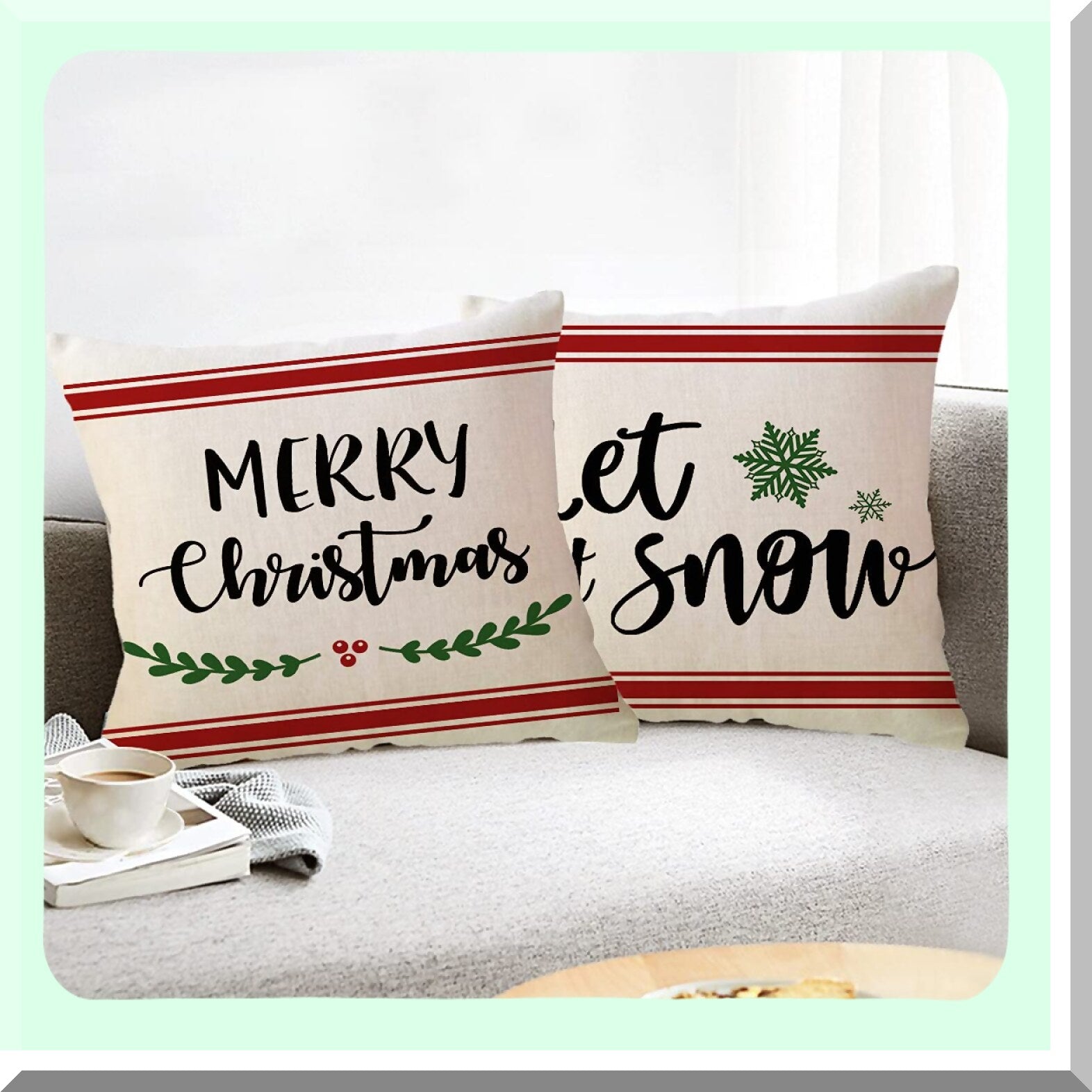 Winter Wonderland Farmhouse Pillow Covers - Set of 2 Red Striped Let It Snow/Merry 20x20 Inches Decorative Throw Pillow Covers for Sofa/Couch/Porch