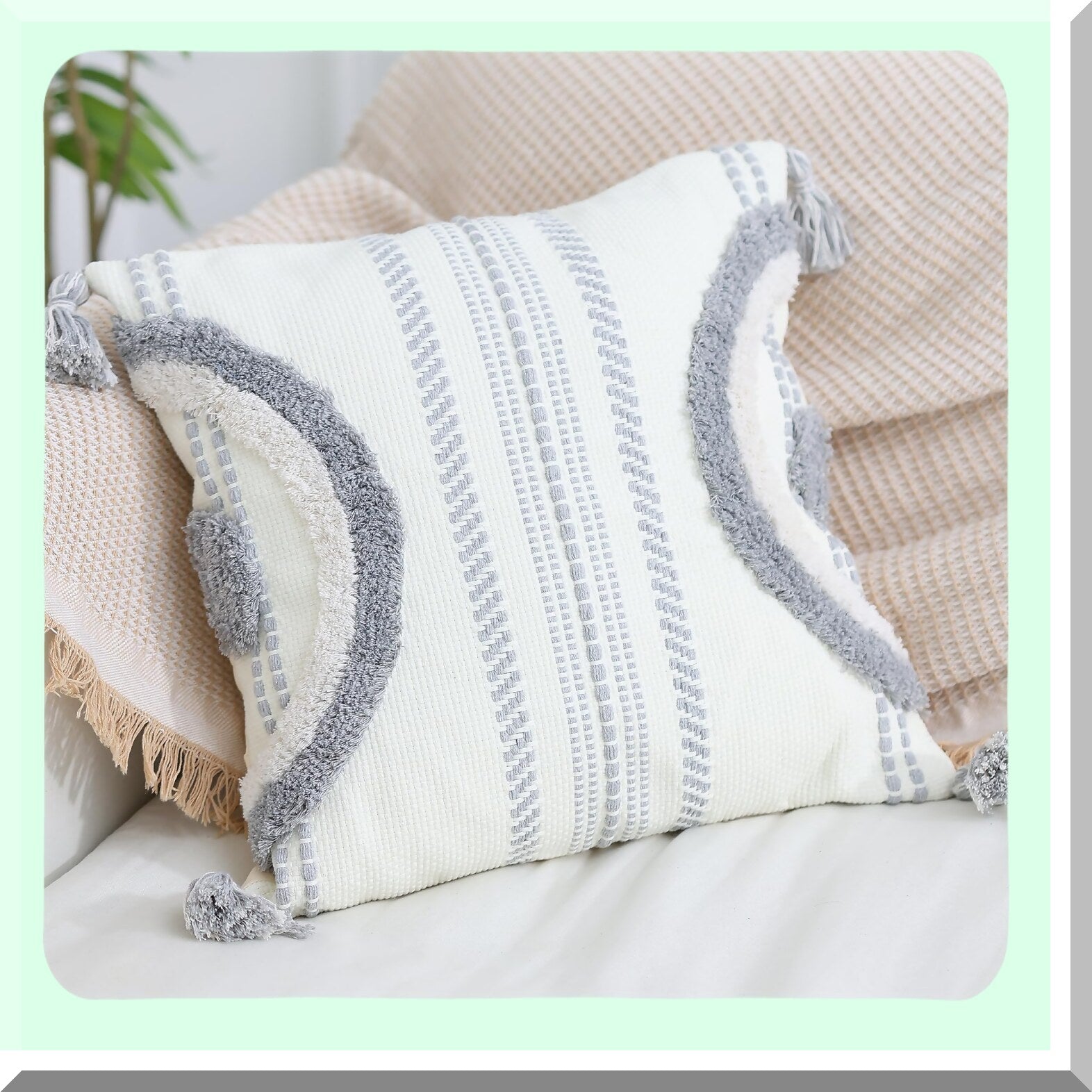 Boho Chic Cotton Pillowcase Set - Modern Farmhouse Decorative Cushion Covers for Couch Sofa & Bedroom - Neutral Grey Accent Pillows (18x18)