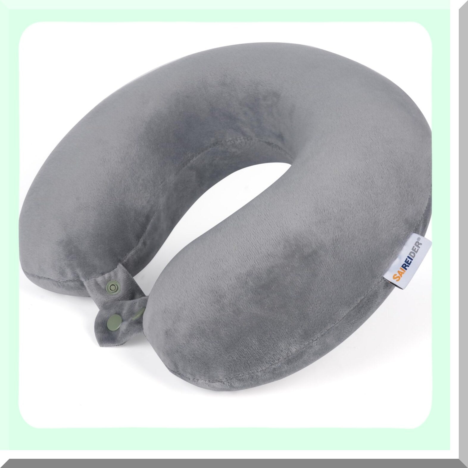 MemoryCloud Travel Pillow - Ultimate Comfort for Sleeping on Airplanes! 100% Pure Memory Foam Neck Pillow with Washable Cover in Grey. Fly in Style!