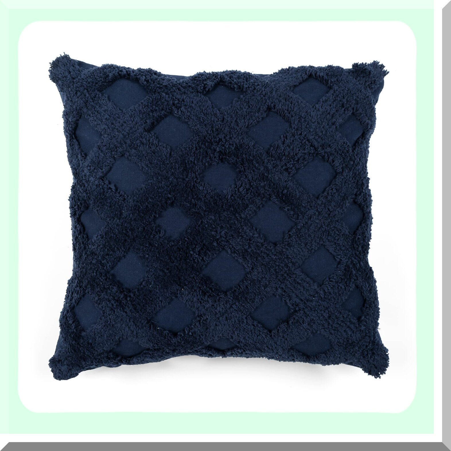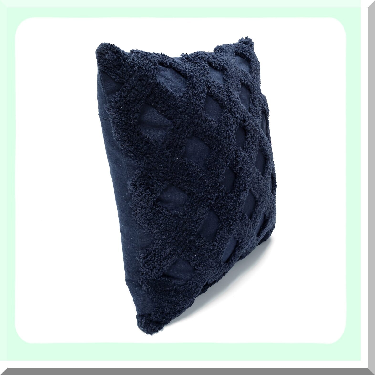 Navy Diamond Tufted Square Pillow Cover - 20x20 Decorative Throw Pillows for Bed, Couch, Chair - Diagonal Pattern Accent Pillow Case