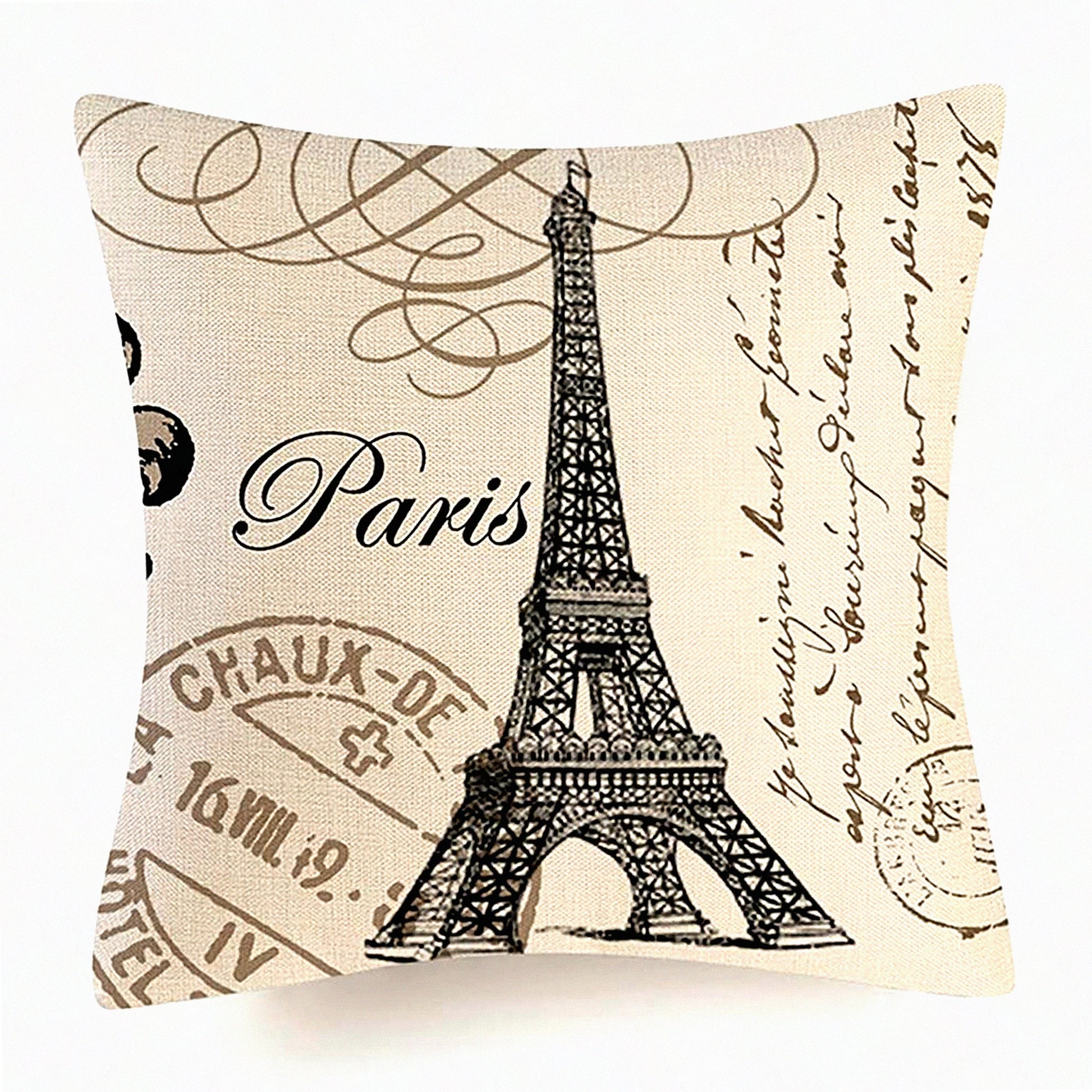 Eiffel Tower Linen Decorative Throw Pillow Cover - Parisian Square Cushion Slipcover for Couch Sofa Bed Living Room - Durable 18x18 Inch Home Decor Accent (1 Piece)