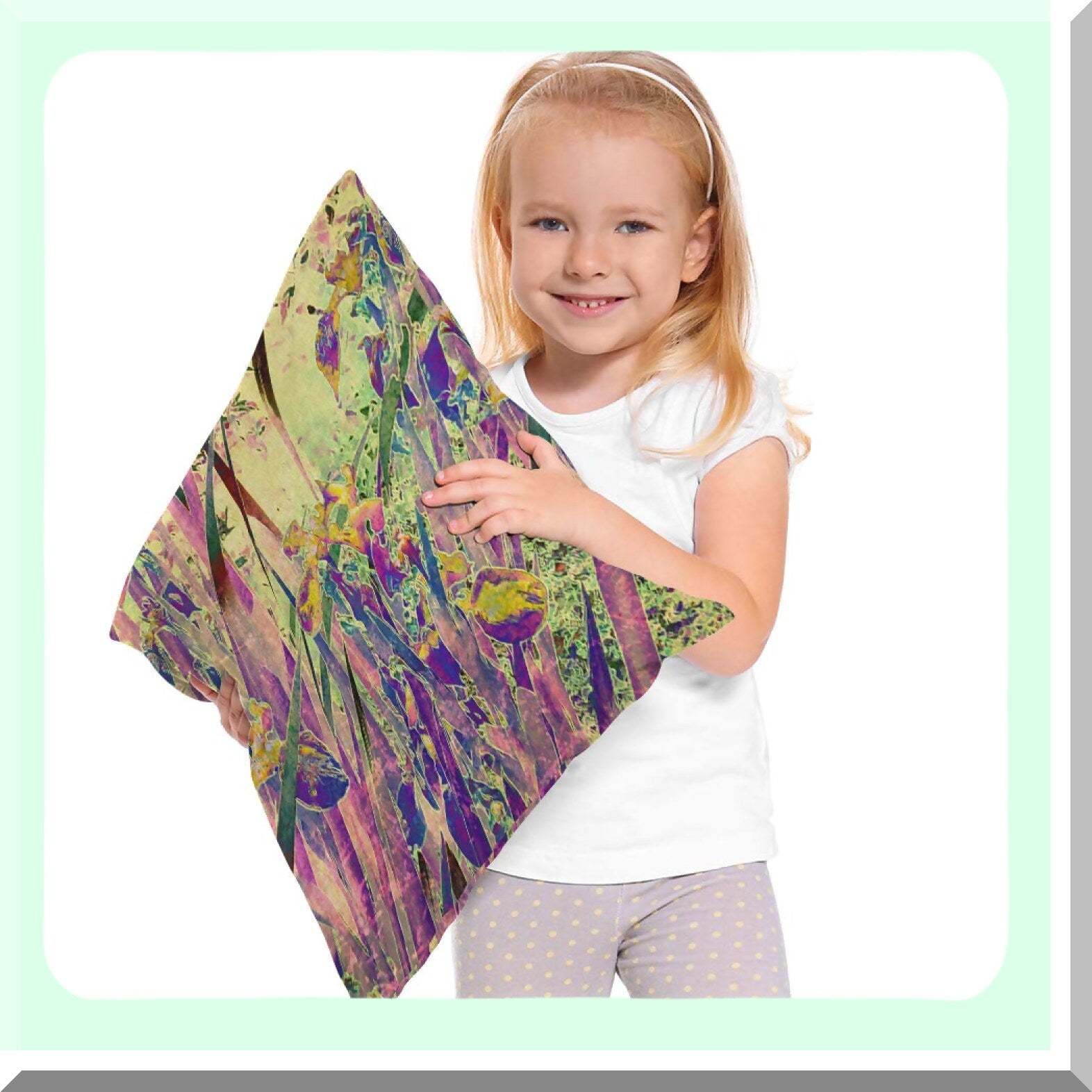 Nature's Vintage Iris Floral Throw Pillow - Decorative Cushion Cover for Home Decor - Square Cotton Linen Accent Pillow Case in Purple and Green - 18x18 Inch