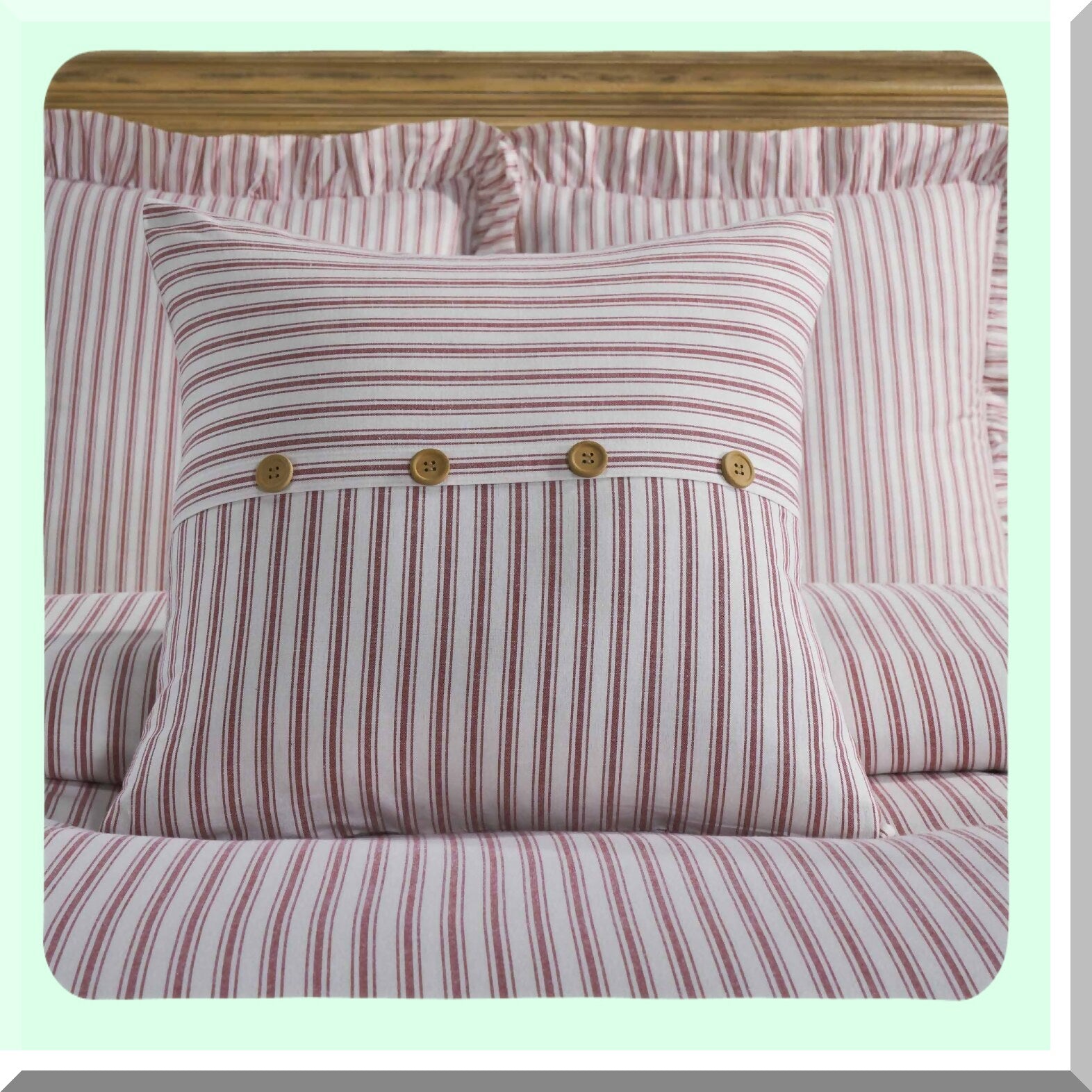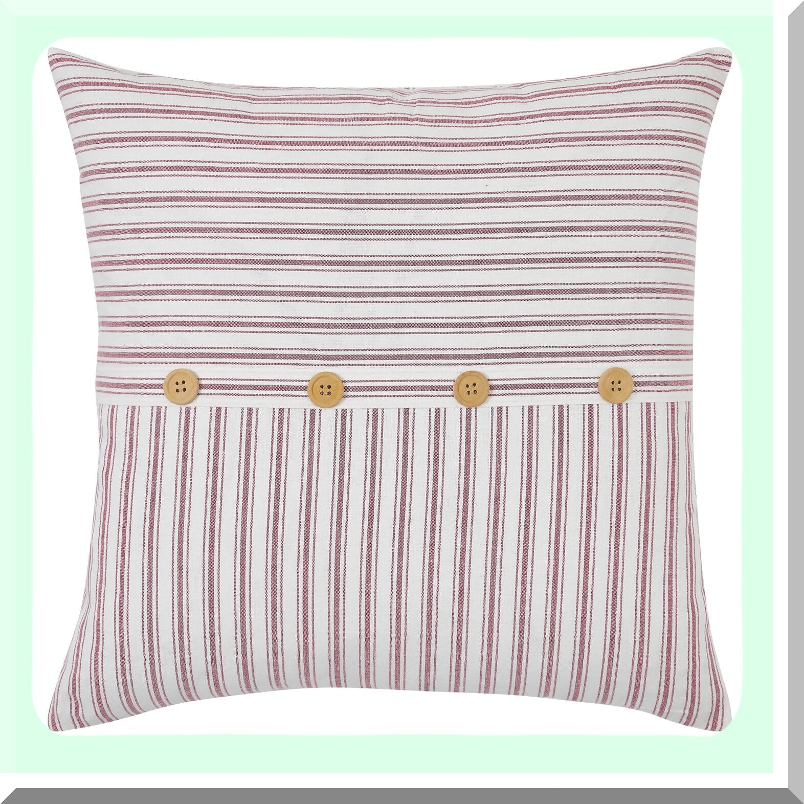 Vintage Americana Buttoned Throw Pillow Cover - Timeless Ticking Red Farmhouse Decor - Patriotic Accent Cushion Case 20x20