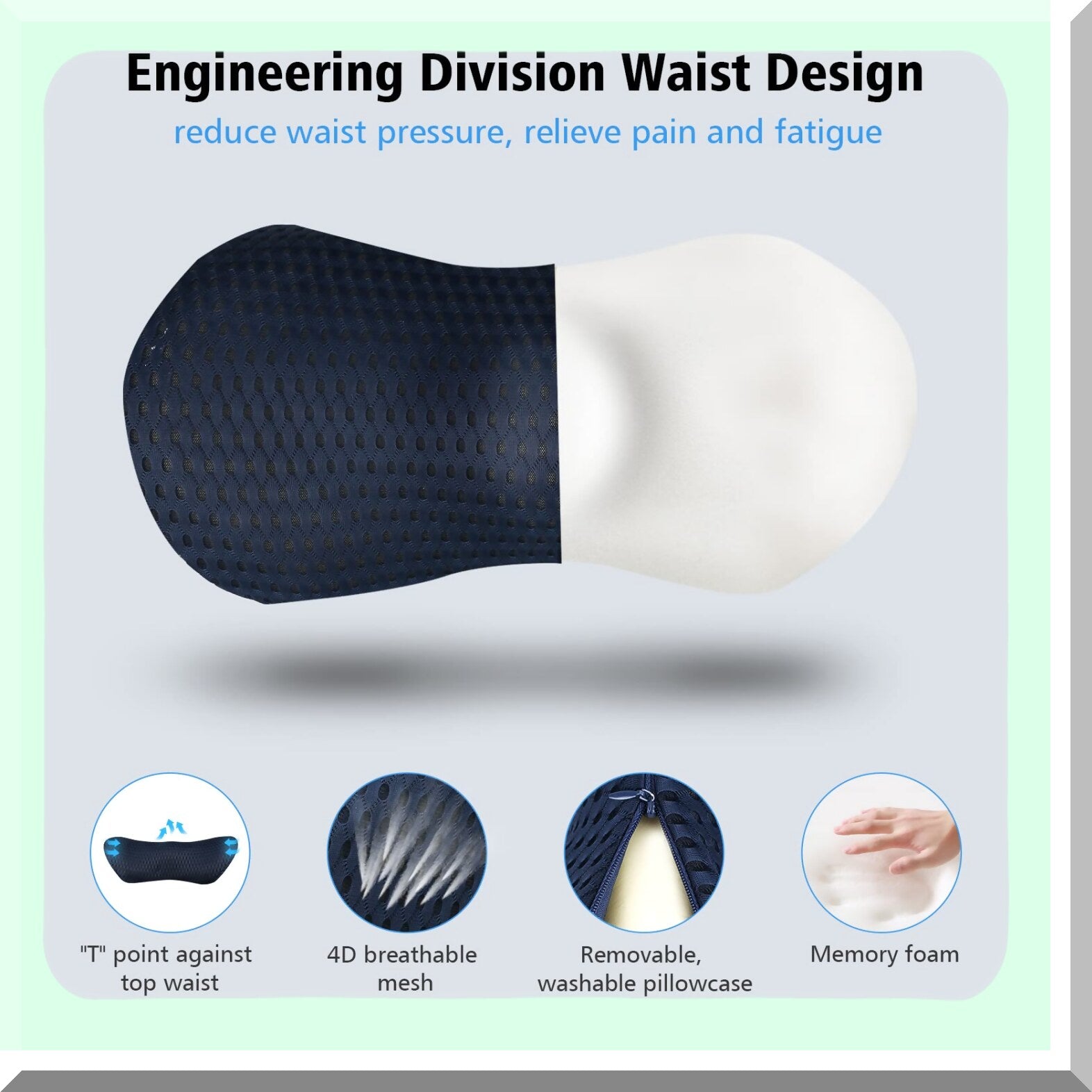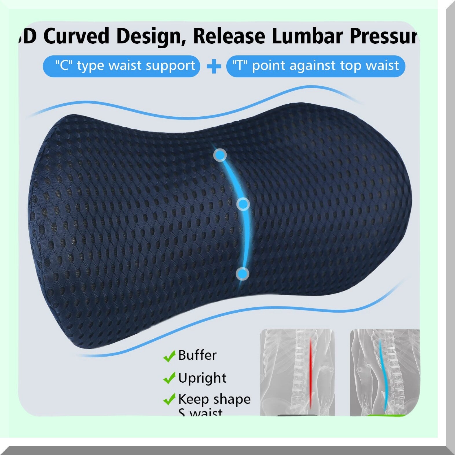MemoryFoam Lumbar Support Pillow - Back Pain Relief Cushion for Office Chair, Car Seat, Sleeping, Travel, Couch - Lower Back Support Rest Pillow