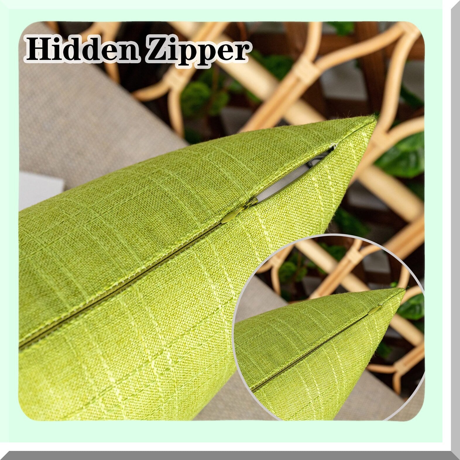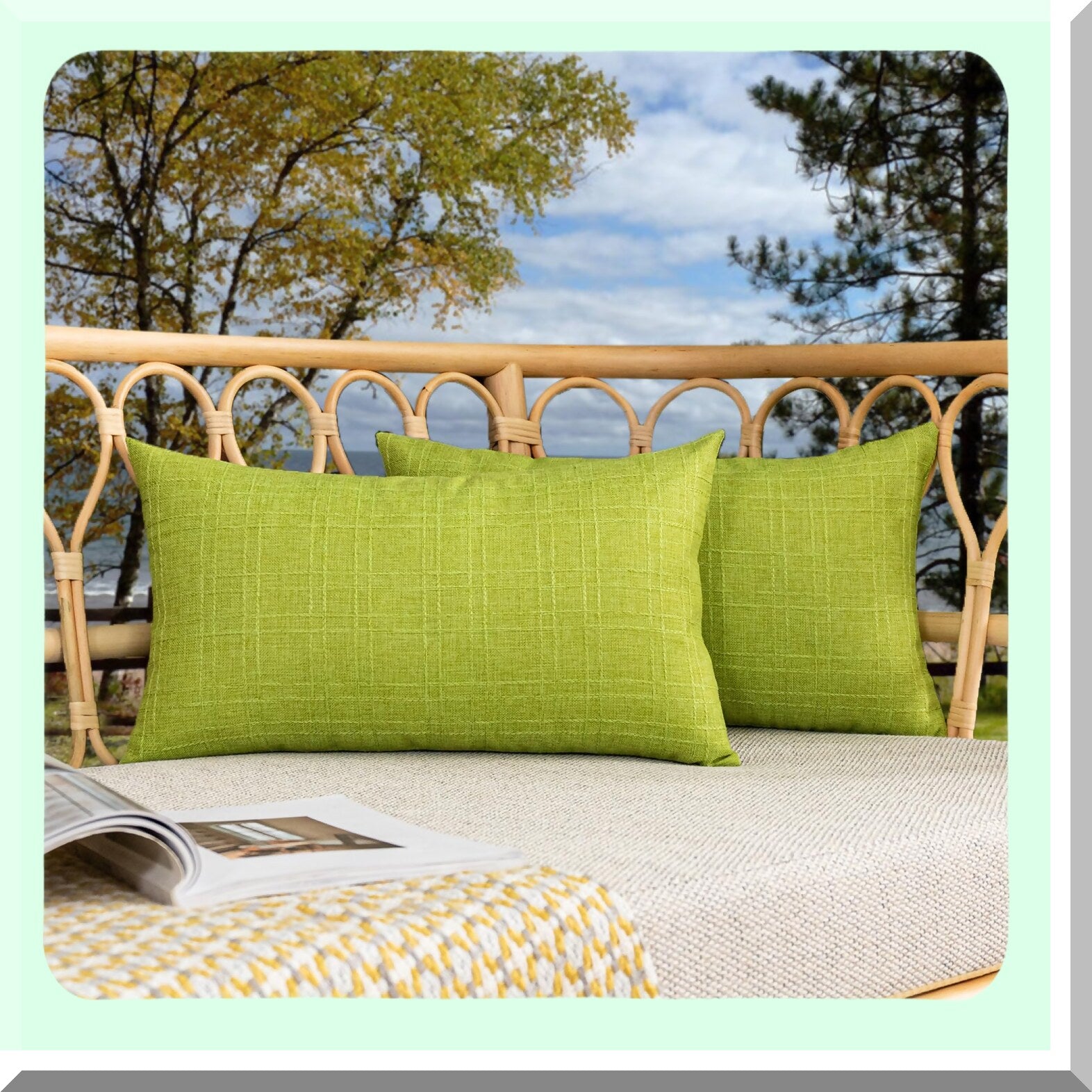 Waterproof Checkered Outdoor Pillow Covers - Set of 2 | Decorative Square Cushion Cases for Patio Couch | Green 12x20 inches 30x50 cm