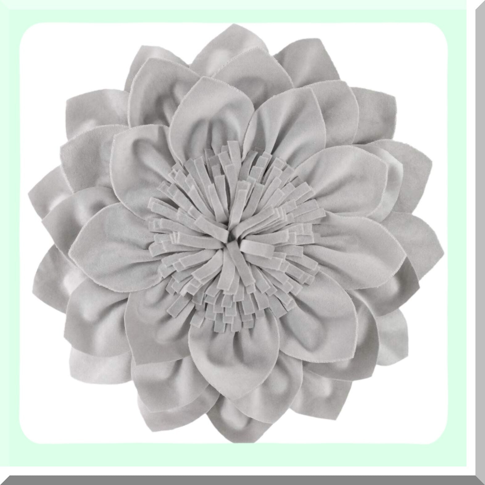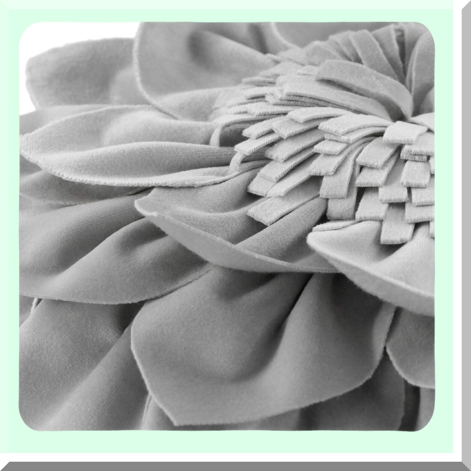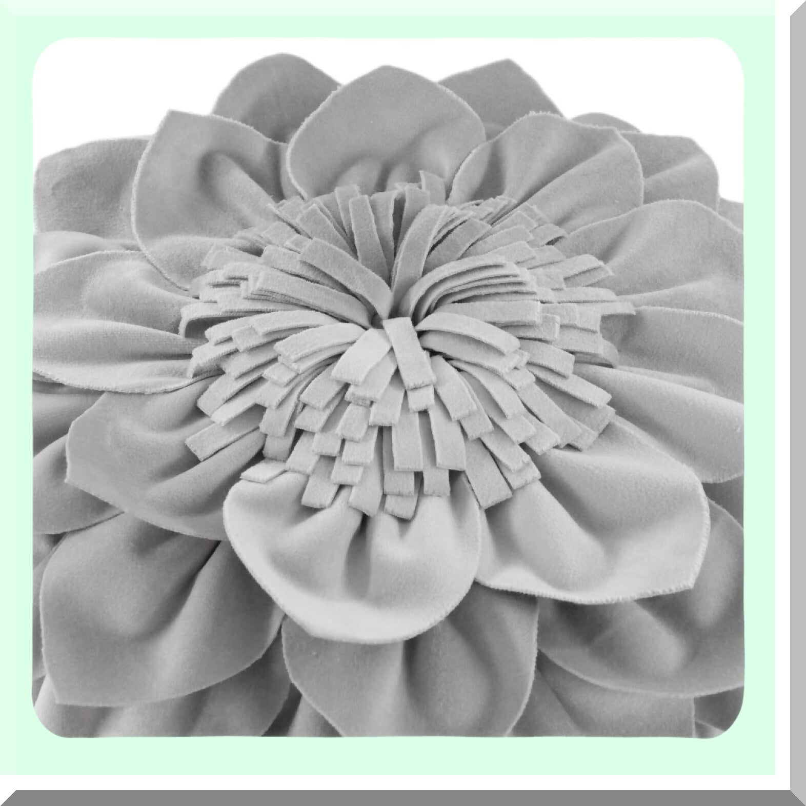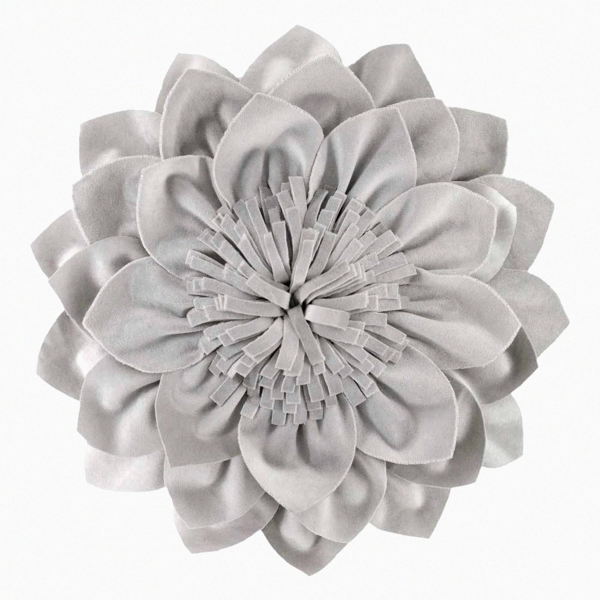 Floral Bloom Round Accent Pillow - 3D Flower Decorative Cushion for Couch & Bed - 14" Grey Home Decor Insert Included