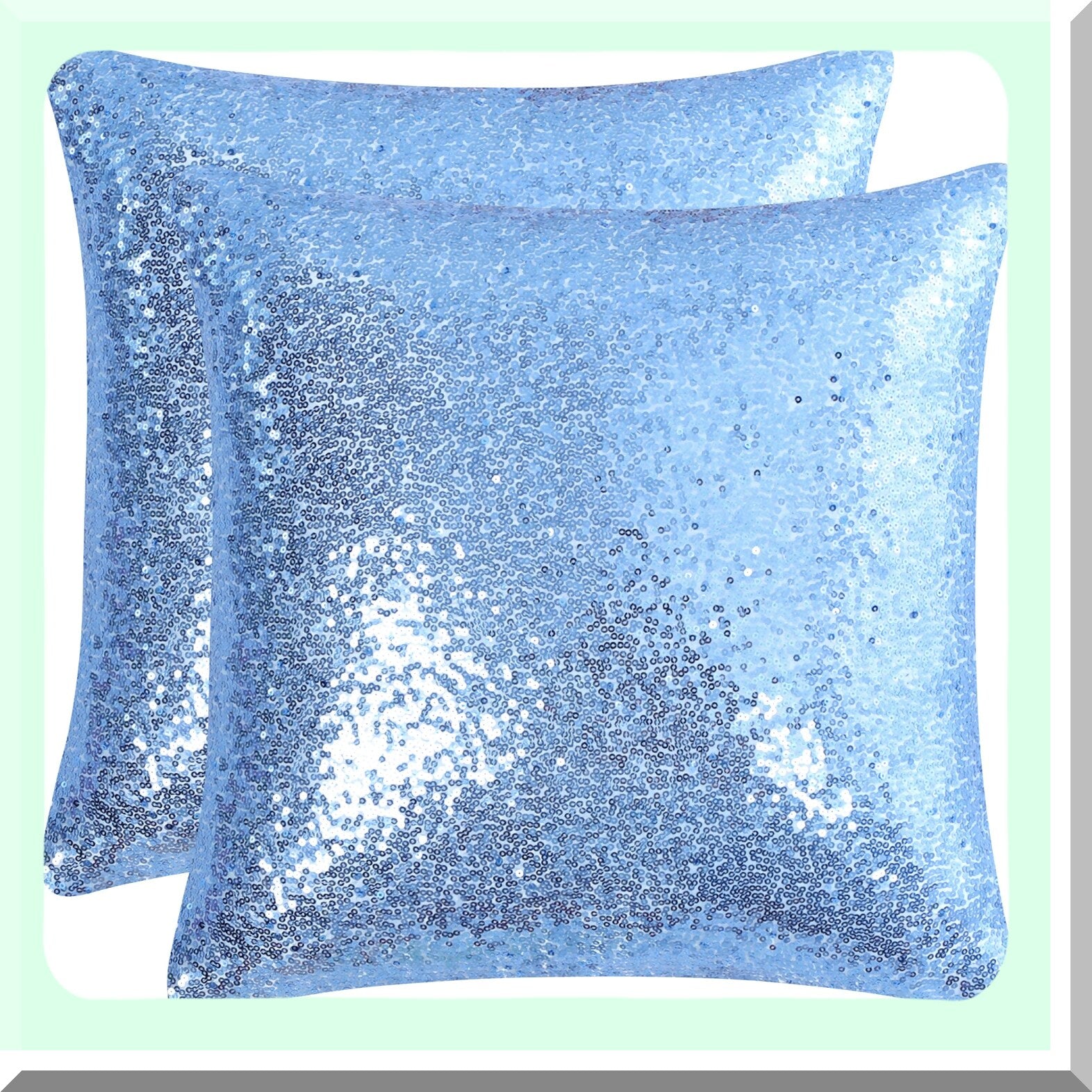 Sparkle Party Pillowcase Set - Sequin Throw Cushion Covers, Shiny Decorative Pillowcases for Thanksgiving & New Year Celebration, 16x16 Inch, Sky Blue