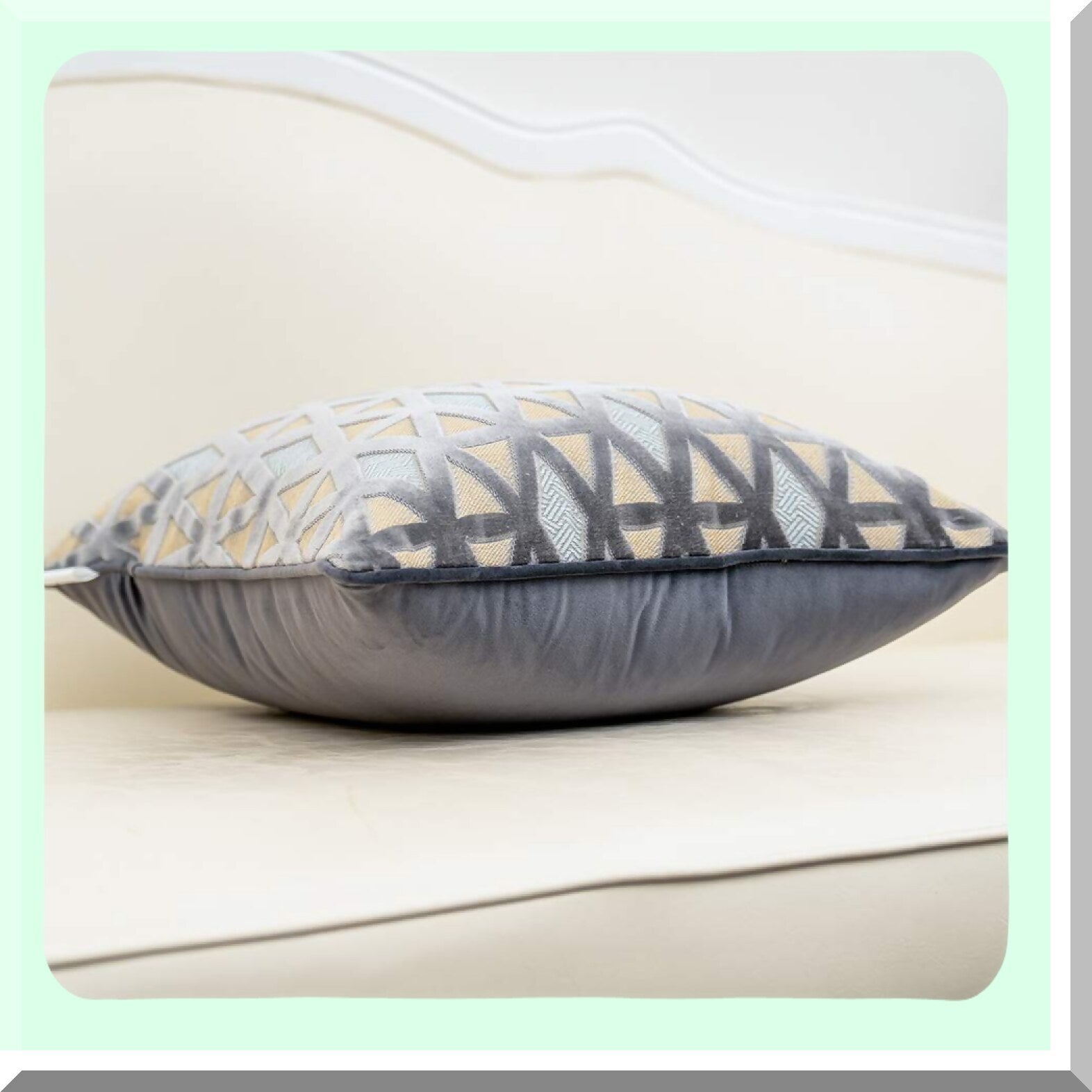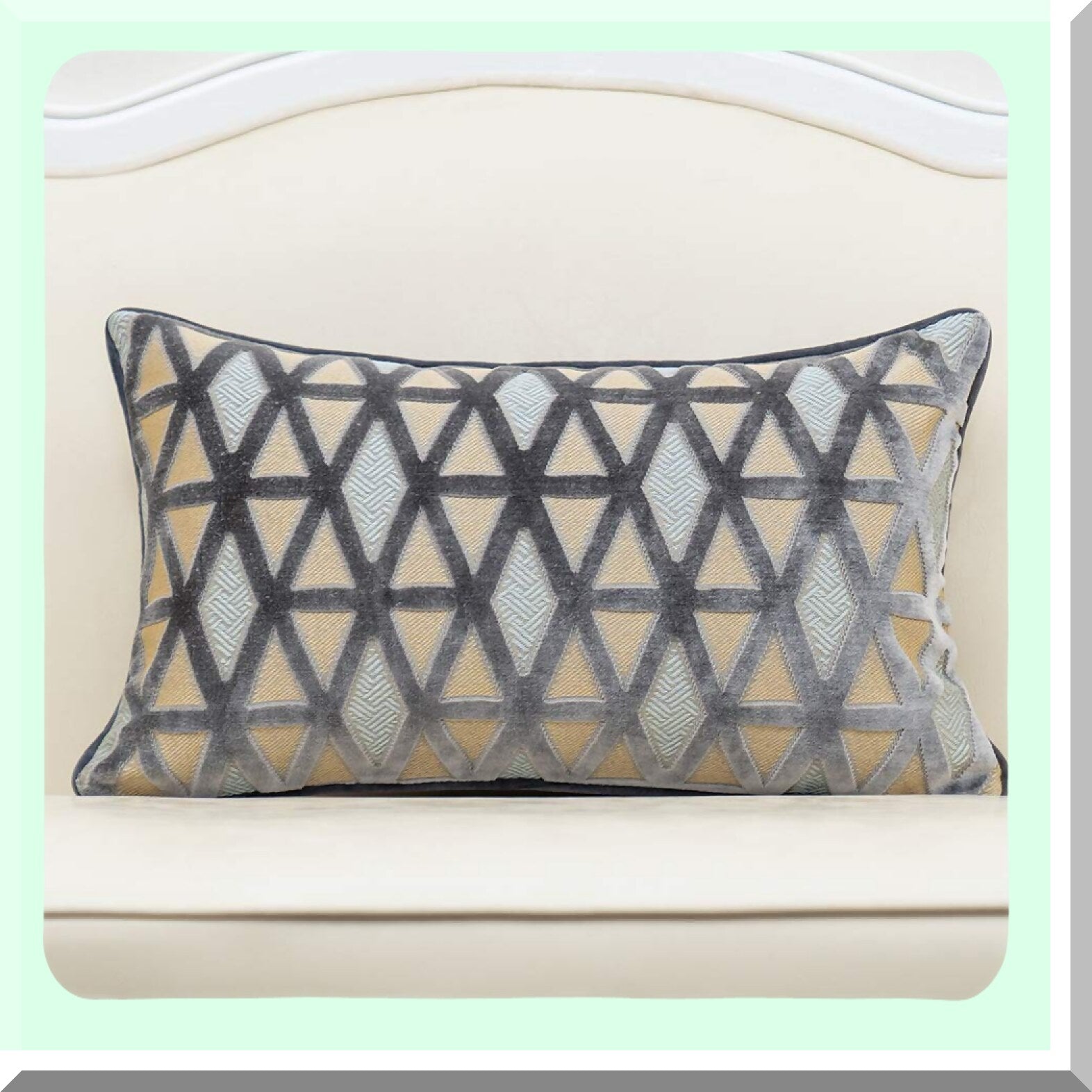 Luxury Diamond Plaid Velvet Lumbar Pillow Cover - Modern Striped Embroidery Cushion Case for Couch, Sofa, Living Room, Bedroom, Car - Gray 12x20"