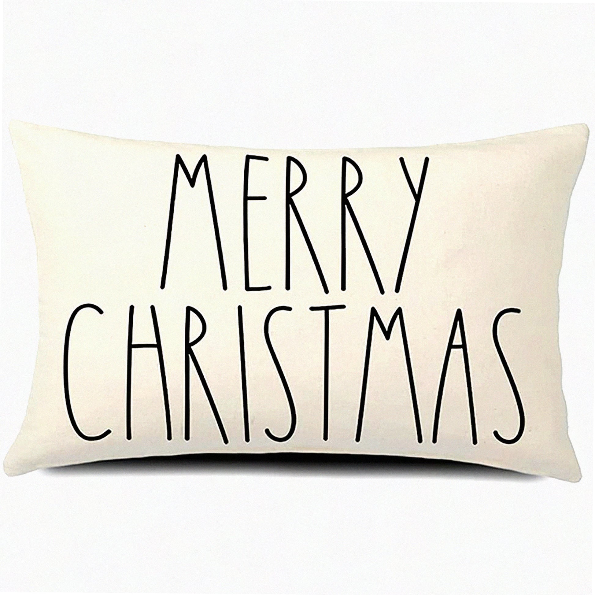 Merry Farmhouse Linen Cushion Cover - 12x20 Inch Decorative Throw Pillow Cover