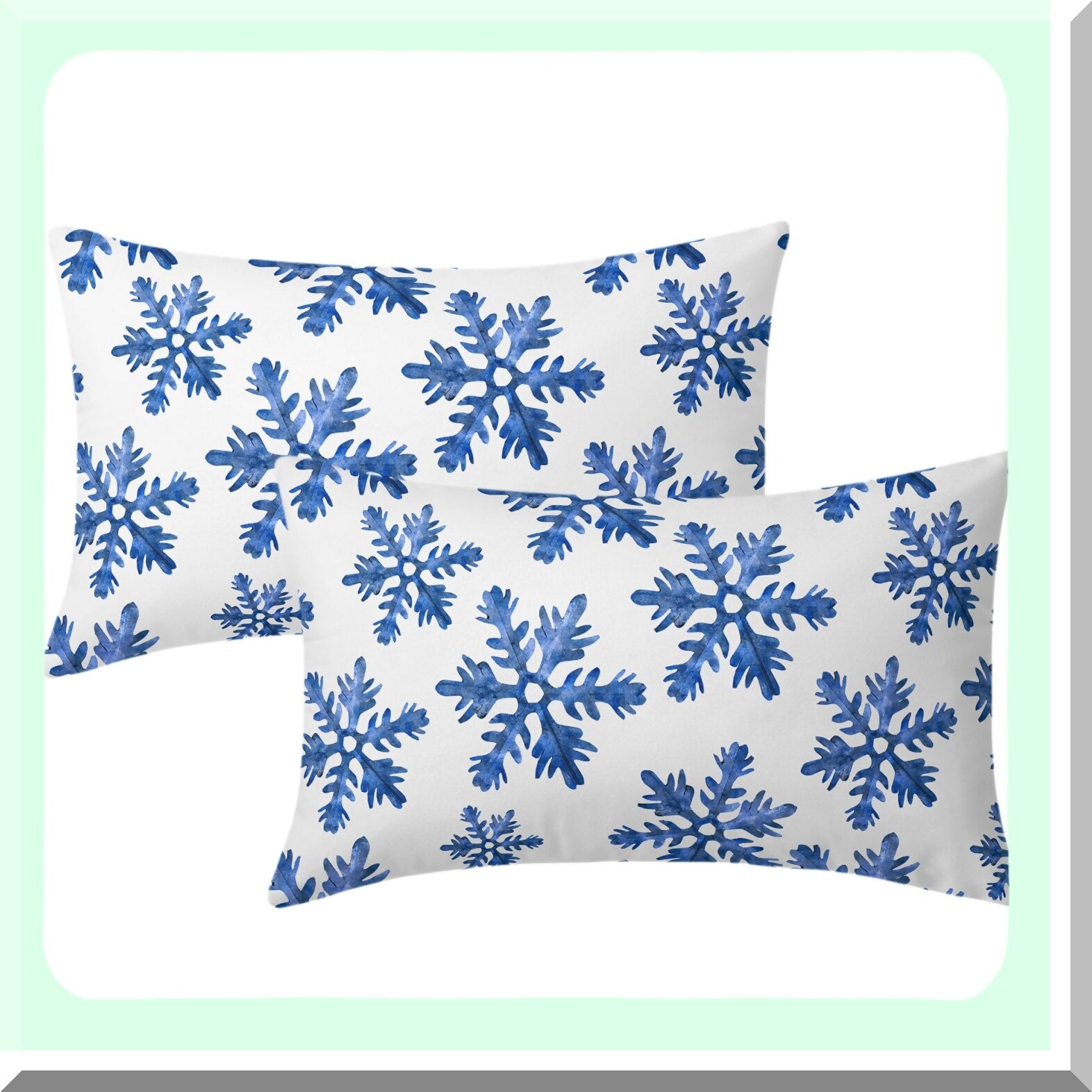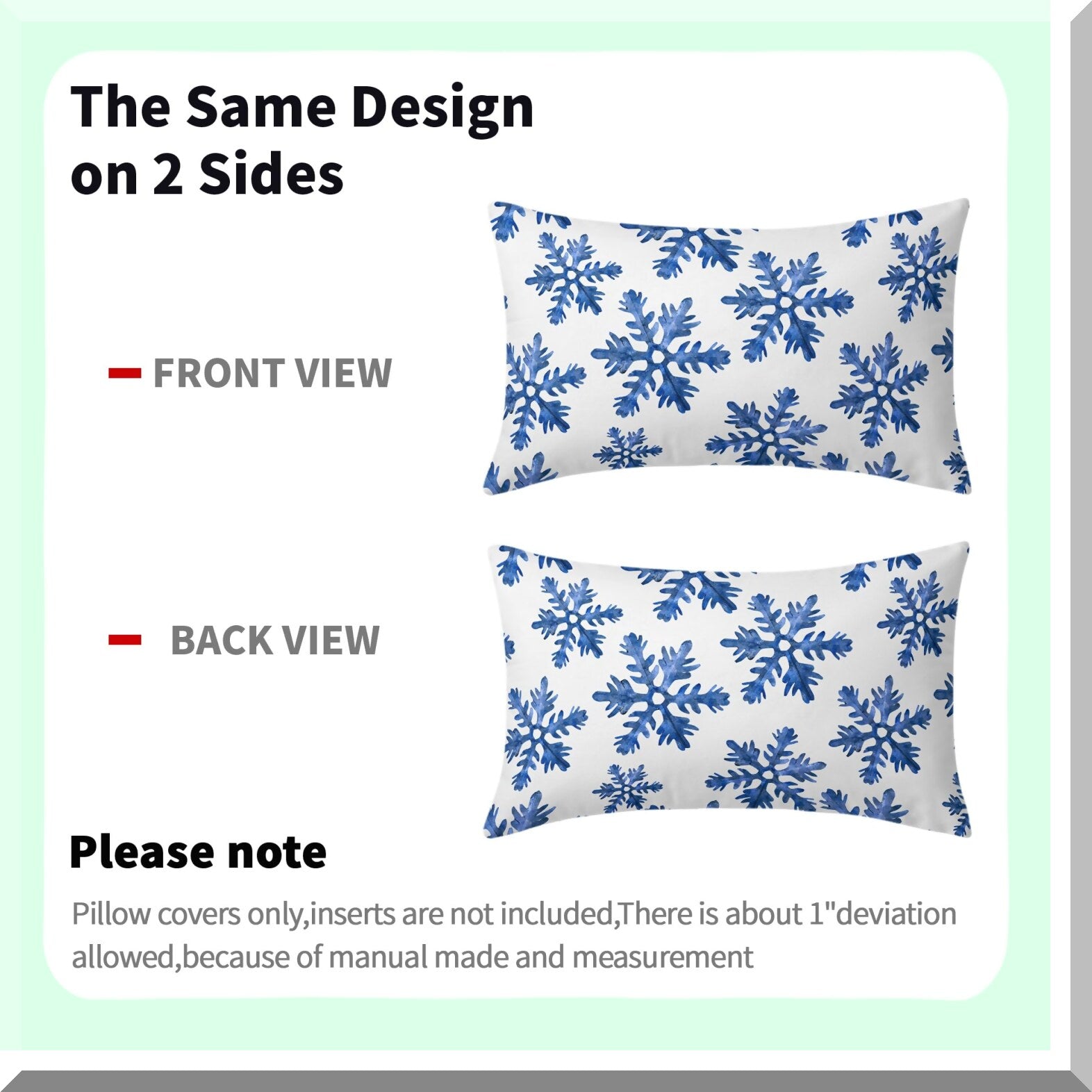 Winter Wonderland Snowflake Lumbar Pillow Covers - Set of 2 | Crystal White Xmas Holiday Pillowcases | Rustic Cushion Cases for Couch Sofa | 12X20 Inch