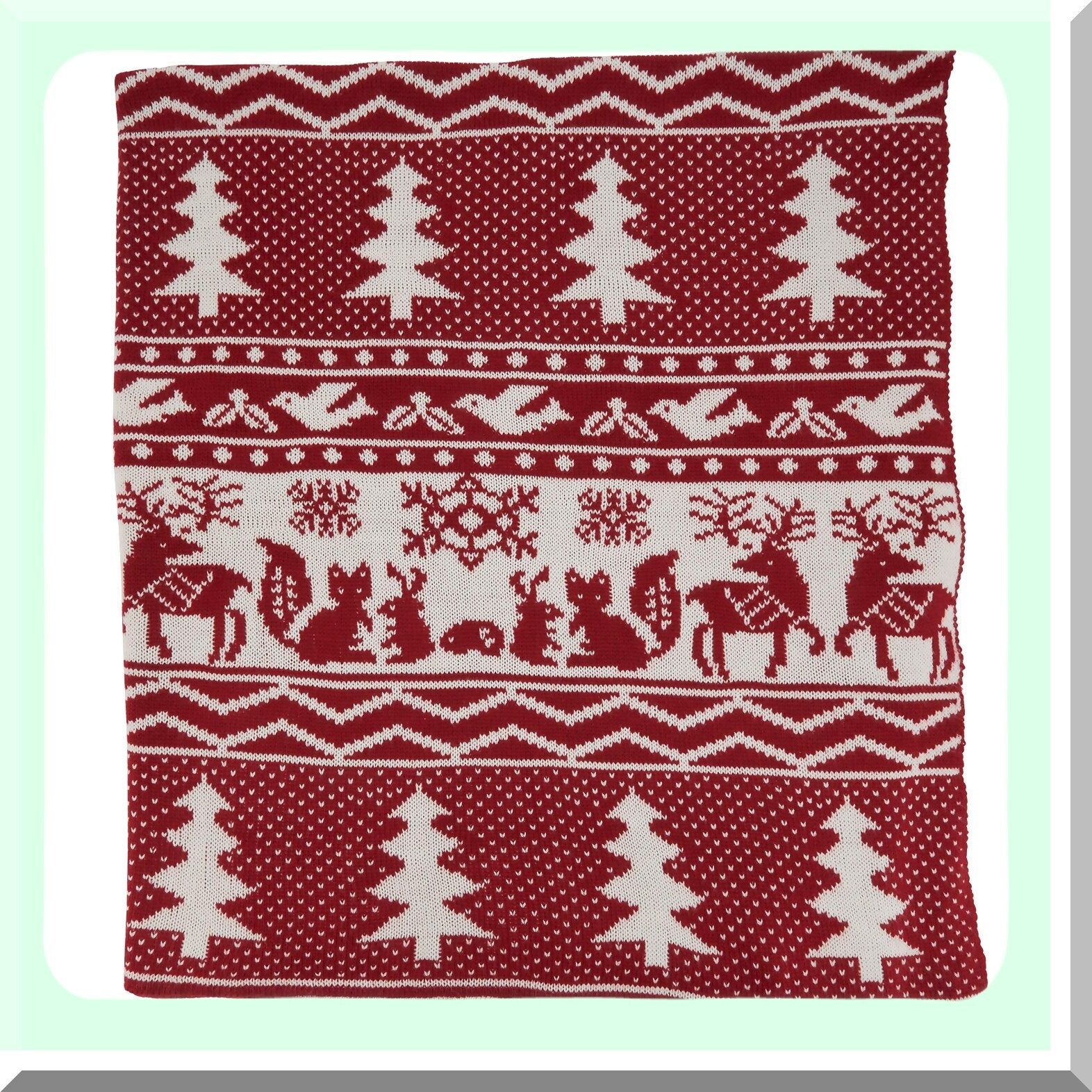Festive Reindeer & Tree Knit Throw Blanket, Red, 50" x 60""